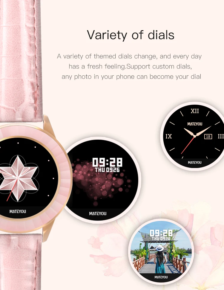 * MCU: NRF52832 QFAA * Датчик ускорения: BOSCH * Дисплей: Экран * Размер: 1,22' * Разрешение: 240x204 * Интерактивный режим: одно касание * Bluetooth: Bluetooth LE 4,0 * Особенности: Описание * Требования к Android: Android 4,4 выше * Требования iOS: iOS 9,0 выше * Шагомер: пройденное расстояние и сожженные калории * Монитор сна: обеспечивает время сна и качество сна * Динамический Пульс: пульсометр в процессе занятий спортом * Отслеживание цели: вибрация и вспышка для празднования * Сигнализация: 3 будильника * Отказ от звонка: нажмите на браслет, чтобы повесить телефон * Секундомер: * Тренировка: ходьба, бег, езда на велосипеде, пропуск, бадминтон, баскетбол, футбол, плавание * Напоминания: имя входящего вызова * Поддержка уведомлений: Wechat QQ Facebook Twitter WhatsApp Skype Instagram и так далее * Управление камерой: поддерживается оригинальное приложение для камеры iOS, встроенная камера для приложения Android. * Домашние шкуры: 3 шкуры на мобильный телефон * OTA Upgrad: обновление прошивки через приложение * Языки: Прошивка: английский, китайский, корейский, испанский, японский, французский, немецкий, русский, арабский, украинский Приложение: английский, китайский простой, китайский традиционный, английский, немецкий, испанский, японский, французский, итальянский, русский, арабский, португальский, украинский * Материал ремешка: кожаный ремешок Миланский ремешок для часов * Цвет: розовый * Bluetooth: Bluetooth LE 4,2 * Водонепроницаемость: IP68 * Аккумулятор: 200 мАч * Режим ожидания: 10-15 дней