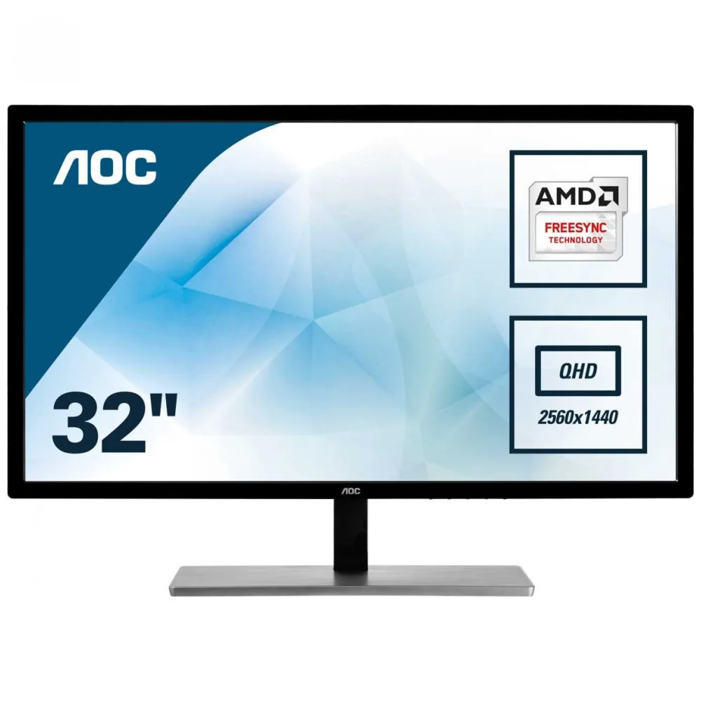 AOC Value-line Q3279VWFD8. Диагональ экрана: 80 см (31.5"). Разрешение экрана: 2560 x 1440 пикселей. Тип HD: Wide Quad HD. Технология дисплея: LED. Поверхность дисплея: Матовый. Время отклика: 5 мс. Собственное форматное соотношение: 16:9. Угол обзора по горизонтали: 178°. Угол обзора по вертикали: 178°. Цвет товара: черный.