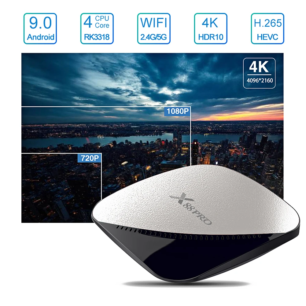 Android ТВ коробка, X88 PRO Android 9,0 4 Гб Оперативная память/64GB Встроенная память RK3318 Quad-Core Поддержка 2,4G/5,0G, Wi-Fi, Ethernet 10/100 м DLNA 3D 4K мини ТВ коробка