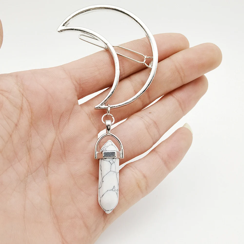 Геометрические заколки для волос в форме Луны Заколка-пряжка с кристаллами шестиугольный кулон аксессуары для волос