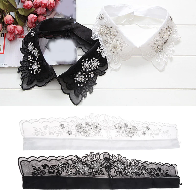 Элегантный жемчужный белый цветок Модная рубашка свитер с фальшивым воротничком кружевной вышивкой