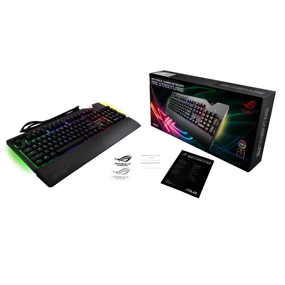Клавиатура ASUS ROG Strix Flare 90MP00M3-B0RA00 Cherry MX black switches, проводная, механическая, USB, RGB подсветка, черный