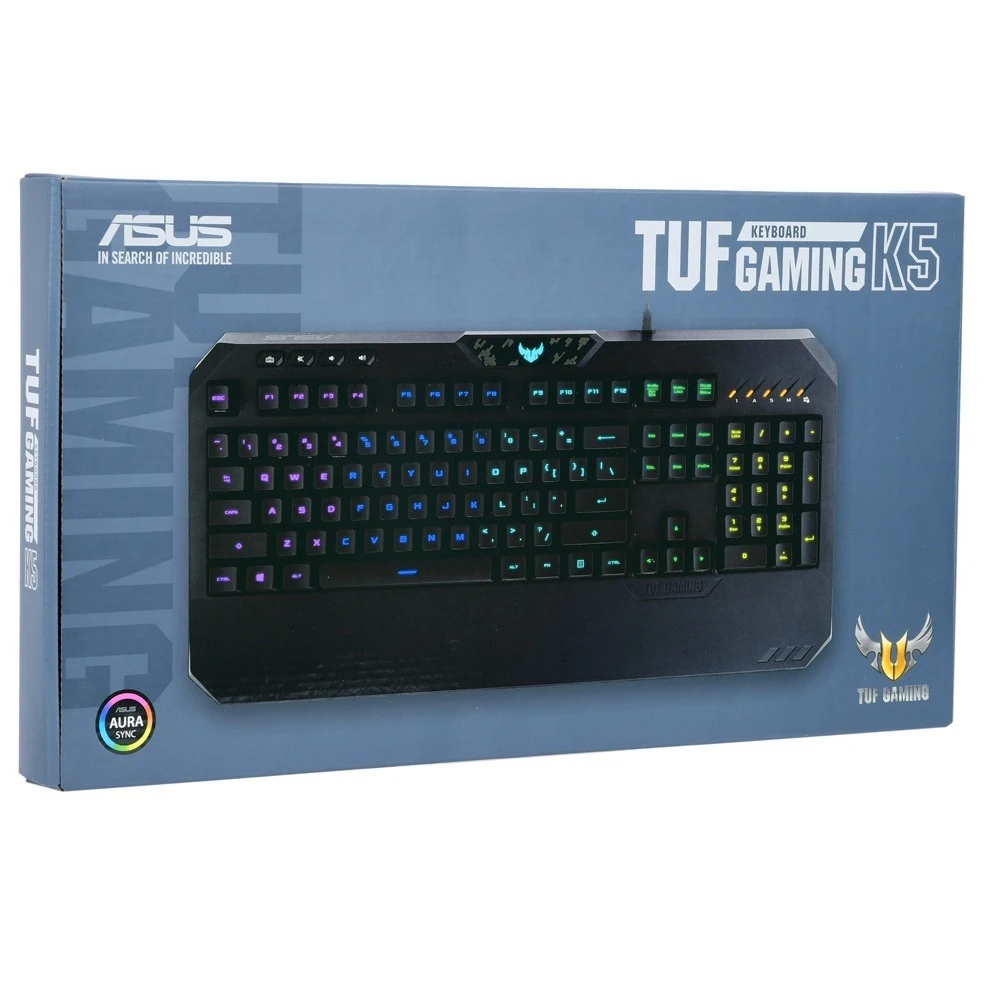 Клавиатура ASUS TUF Gaming K5, Mech-Brane, проводная, механическая, игровая, RGB подсветка, USB, цвет: черный