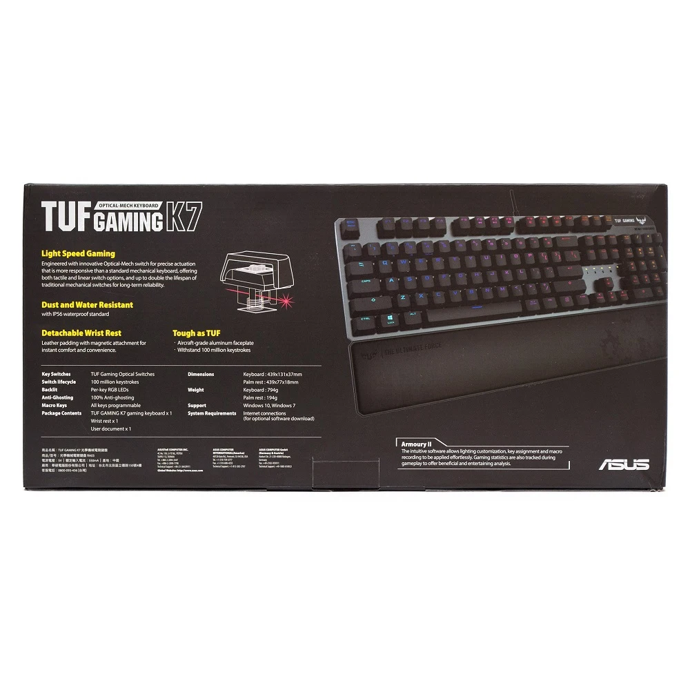 Клавиатура ASUS TUF Gaming K7, Linear Optical-Mech switch, проводная, игровая, механическая, RGB подсветка, USB, цвет: черный