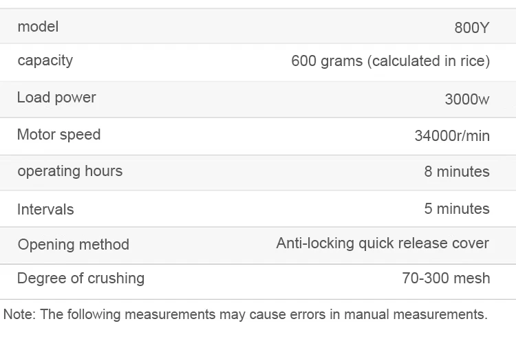Спецификация:Тип: Кофемолки с лезвиямиДиаметр: 17 смЕмкость: 800 гНапряжение: 220 В.Номинальная мощность: 1400 Вт.Скорость двигателя: 30000 об/минВремя работы: 8 минутИнтервал: 5 минутОткрытая крышка: быстро открывающаяся крышка с защитой от блокировкиСтепень смятия: 70-300 сеткаВес нетто продукта: 5 кг