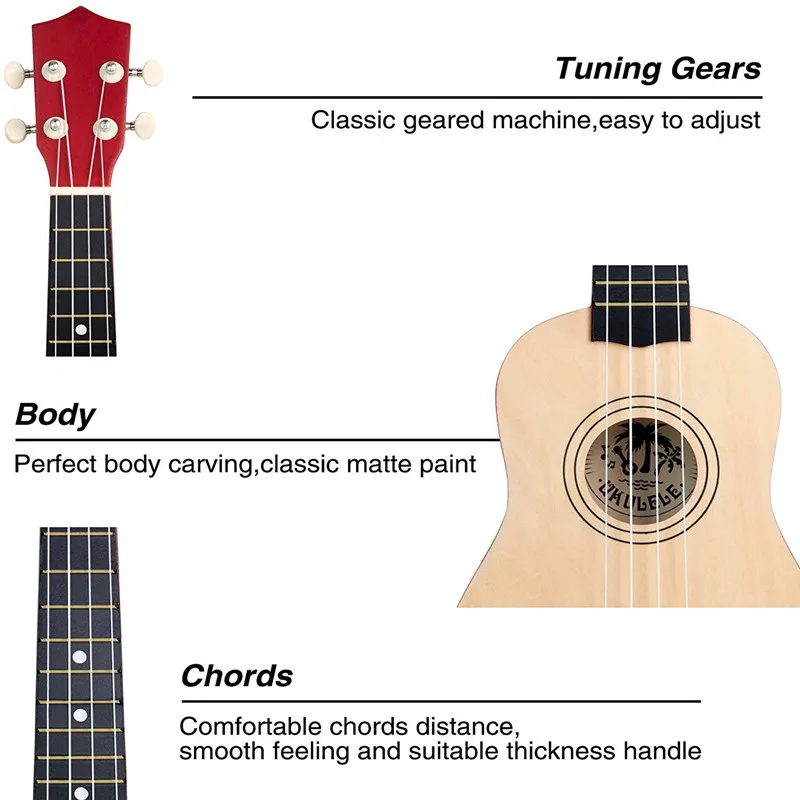 Первый инструмент к музыкальному миру. Наши Сопрано-укулели высотой около 20 дюймов и имеют 12 ладов. В качестве четырехструйного выщипывания инструмента. Ukes-это комфорт и легкость игры для начинающих, которые понятия не имеют, как играть на каких-либо инструментах.