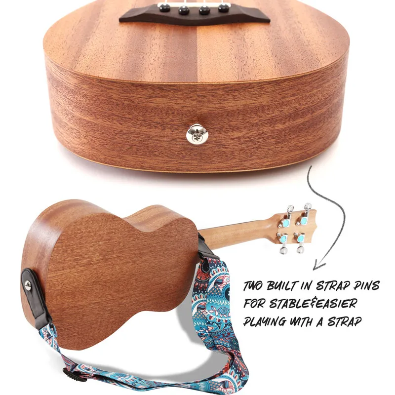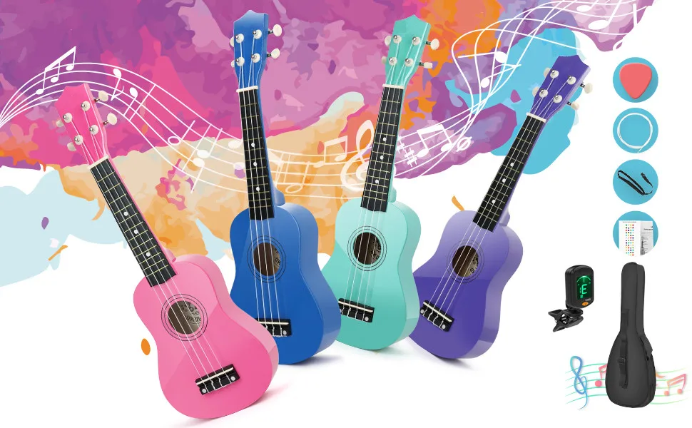 Первый инструмент к музыкальному миру. Наши Сопрано-укулели высотой около 20 дюймов и имеют 12 ладов. В качестве четырехструйного выщипывания инструмента. Ukes-это комфорт и легкость игры для начинающих, которые понятия не имеют, как играть на каких-либо инструментах.