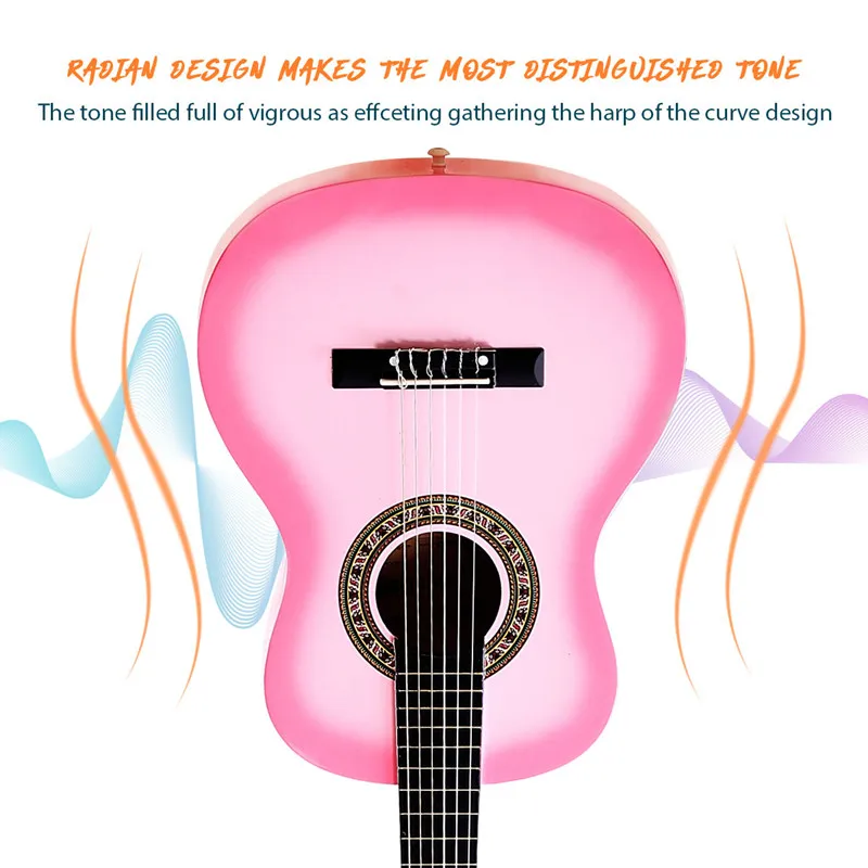 Если вы ищете стильную и прочную гитару для себя или своих малышей, эта гитара будет вашим идеальным выбором. Корпус из дерева, гриф и шея из березы, прочные нейлоновые струны, все они хорошо соединяются, что делает их надежными и удобными для начинающих гитар. Прочный музыкальный инструмент поддерживает вас, чтобы вы придерживались своего хобби и придерживались ваших растущих навыков и опыта. Дополнительные аксессуары, такие как тюнер, выбор, струны и капо, предлагаются для того, чтобы помочь вам создать Красивые песни и стать чем-то виртуальным. Отделка из натурального дерева идеально подходит для начинающих, как промежуточных, так и передовых игроков.