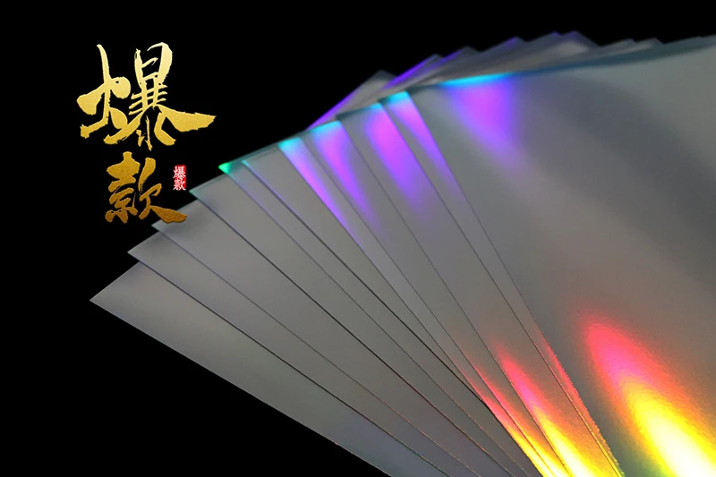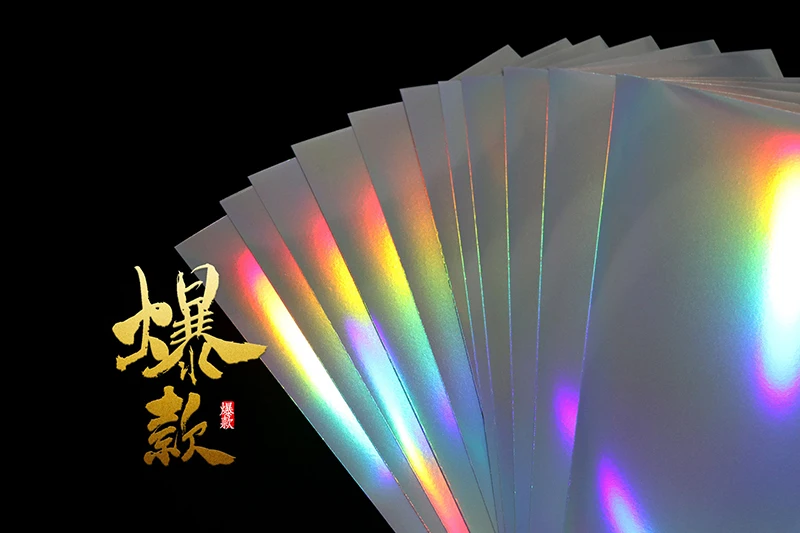 1. Размер: A4(297*210 мм) 2. Толщина: 0,125 мм 3. Применение: УФ-печать на Epson, Canon, HP и других Струйных Принтерах 4. Особенности: эффект печати яркий и великолепный, кристально чистый, Радужный лазер, ослепительный, сказочный свет и эффект теней заставляют зрителей волноваться. Он может быть широко использован во многих областях, таких как свадебная фотография, покраска распылением рекламы, Знак карты, интерьера, дизайн упаковки и т. Д.