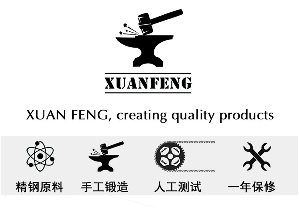 XUANFENG brand is the own brand of Guangzhou Xifeng Trading Co., Ltd. The Xuanfeng tools mainly include short knives, sabers, folding knives, butterfly knives, and kitchen knives. Xuanfeng brand adheres to the principle of using high-quality steel to create quality products. So the products are manually tested Full length: 22cm Blade length: 9.8cm Blade materia8Cr183Wov Blade sheath: Nylon Hardness: 56HRC Surface: Sanding