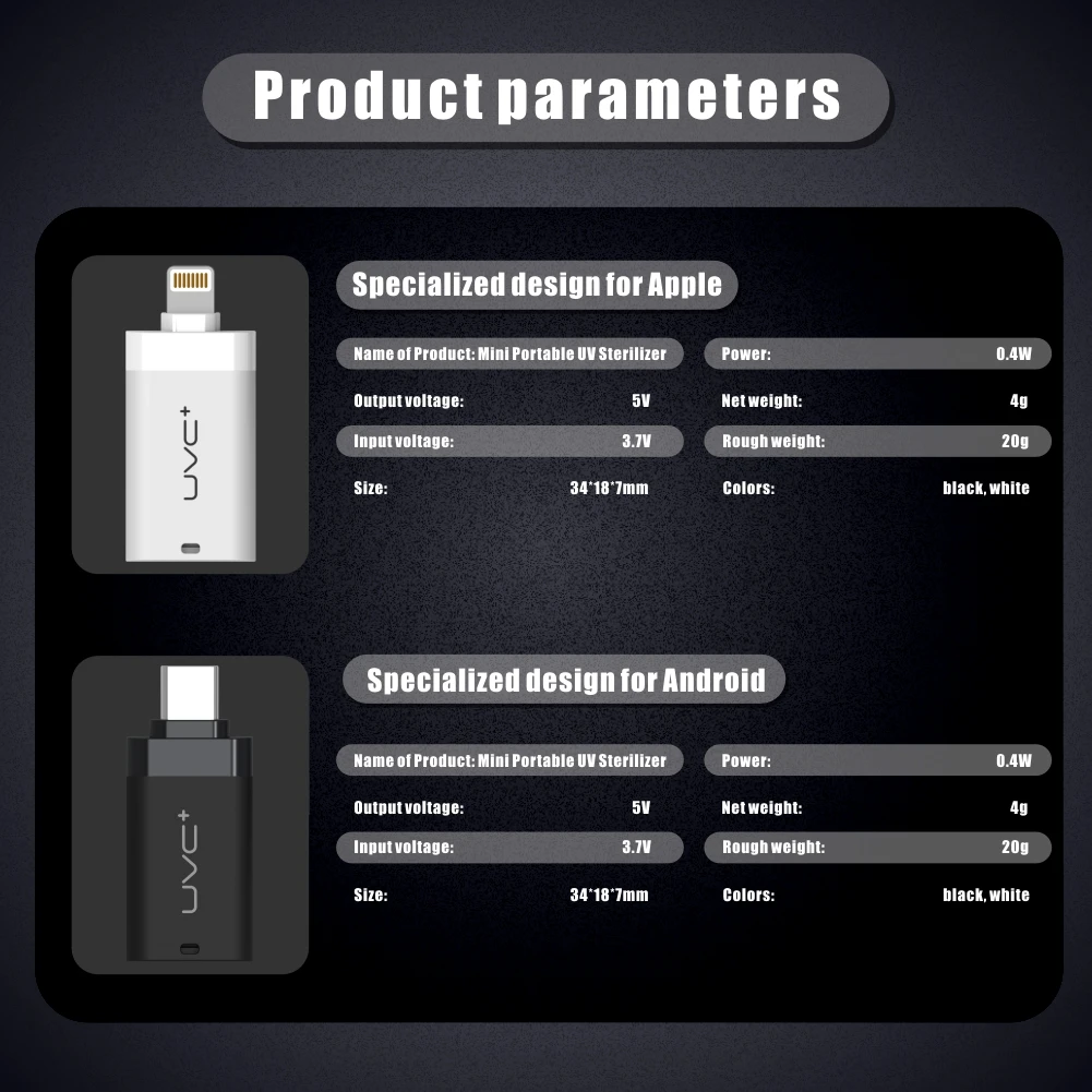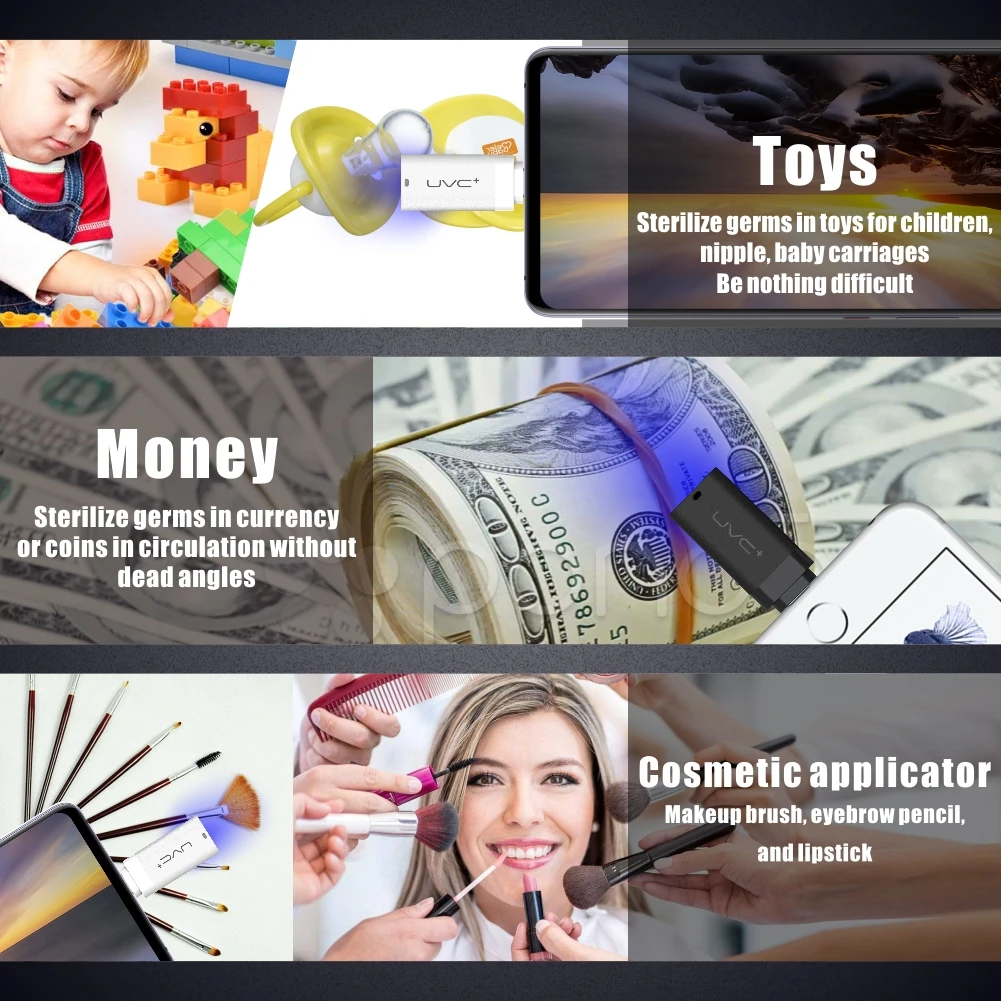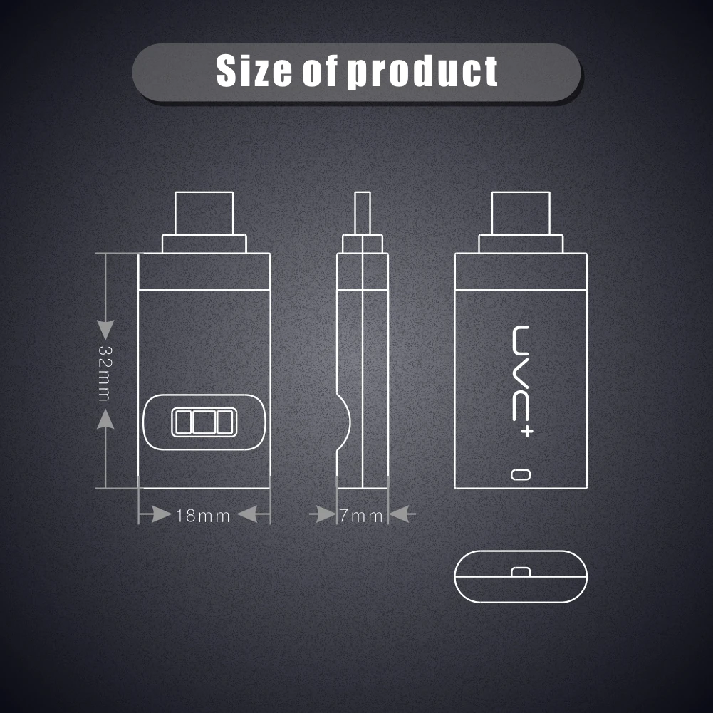 Описание: Особенности: 1. Миниатюрный мгновенный стерилизатор, домашний первый УФ-стерилизатор, высокий Эффективность и энергосбережение, уникальный объем, небольшой и деликатный UVC Стерилизатор. 2. Стерилизатор отличается высокой точностью, специальной длиной волны, ультрафиолетом Светильник UVC для стерилизации и дезинфекции поверхности изделия. Он имеет Сильноустойчивость к общим бактериям и вирусам, достигающая 99.9% Уровень стерилизации в течение 5 секунд. 3. Интерфейс Type-c, просто подключите его к мобильный телефон для использования. 4. Широко используется для дома, офиса, путешествий и т. д. Параметры: Название продукта: портативный мини-стерилизатор Мощность: 0,4 W Выходное напряжение: 5 В Вход напряжение: 3,7 V Размер продукта: 34*18*7 мм Цвет: черный, белый Стиль: Android TYPE-C разъем Функция: дезинфекция, стерилизация Посылка включает в себя: 1 x стерилизатор