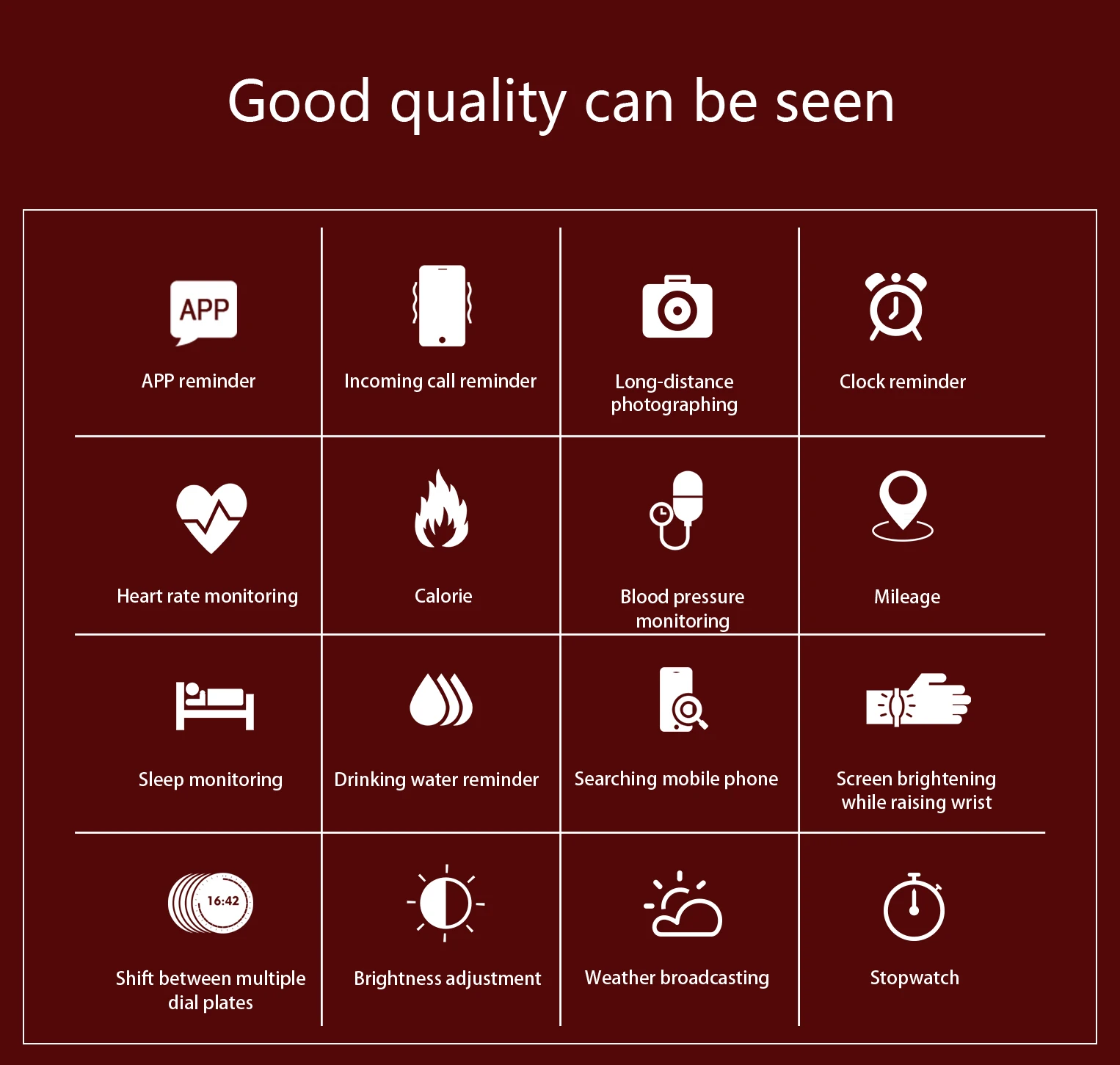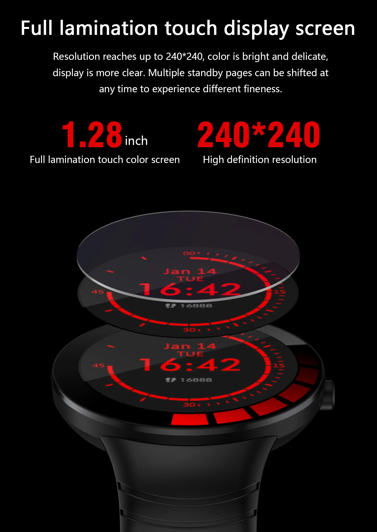*System requirements: Android 4.4 and above, IOS 8.0 and above, support bluetooth 5.0 *Bluetooth version: BLE 5.0 *The basic function: Time and date display, step count, calories, distance, weather display, stopwatch Heart rate monitoring (real-time monitoring and timing monitoring -- 2 hours interval), blood pressure and oxygen monitoring and sleep monitoring (sleep duration and sleep quality) Store 8 historical information, adjust the brightness of the bracelet, check the MAC address of the bracelet, and reset the bracelet Multiple movement modes (running, cycling, swimming, tennis, rope skipping, table tennis, badminton) GPS movement track function The bracelet head interface can be switched between 6 dial UI Phone calls reminding, SMS, QQ, WeChat Facebook, Skype, Twitter, WhatsApp, Line, KakaoTalk Hangouts, and add other custom APP message content delivery *Remind function: Sedentary reminder, alarm clock reminder *Features: WeChat sports access, sports goal setting, fitness information sharing Weather, smart alarm clock, raise the hand to light the screen, light the screen time, find the phone, find the bracelet, reject incoming calls, take photos with shake, do not disturb mode (do not disturb the time setting, turn off the bracelet vibration, turn off the information reminder) *APP: Tefiti SUOTA function, upgrade the bracelet firmware through APK/APP to automatically synchronize data to APK/APP, historical record query, APP help: general problem solving Android and IOS app sync: Tefiti alert: (IOS system searches the apple store for Tefiti to download and install; Android system in domestic app treasure, abroad in Google store search Tefiti download and install) *The bluetooth chip: Realtek RTL8762C *Heart rate chip: VC31 *Bracelet memory: 128M bit flash, 160k byte ram *Screen display: 1.28-inch IPS color screen 240X240 *Battery capacity: 200 mah *Standby time: About 4 weeks *Working time: About ten days *Physical buttons: Full touch and button *The motor: Built-in vibration reminder *The charging interface: Magnetic charging pad *Waterproof level: IP68 *The sensor: Gravity sensor STK8321 *UI language: Chinese, English, Korean, Japanese, German, Spanish, French, Italian, Portuguese, Arabic, Russian, Dutch, Indonesian, Hindi, polish, Turkish *Bracelet font language: Chinese, English, Korean, Japanese, German, Spanish, French, Italian, Portuguese, Arabic, Russian, Dutch, Indonesian, Hindi, polish, Turkish *APP supported language: English, Arabic, Czech, Dutch, French, German, Indonesian, Italian, Japanese, Korean, polish, Portuguese, Russian, simplified Chinese, Spanish, Thai, traditional Chinese, Turkish *Packing list: Bracelet, color box, instruction manual, charger *Body material: Zinc alloy *Watchband material: Environmental protection TPU