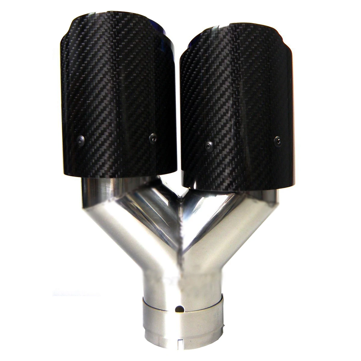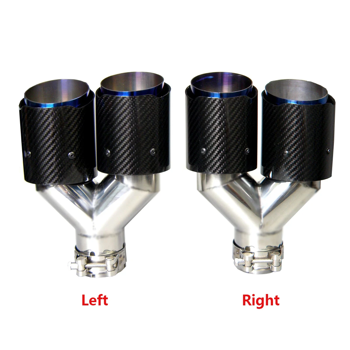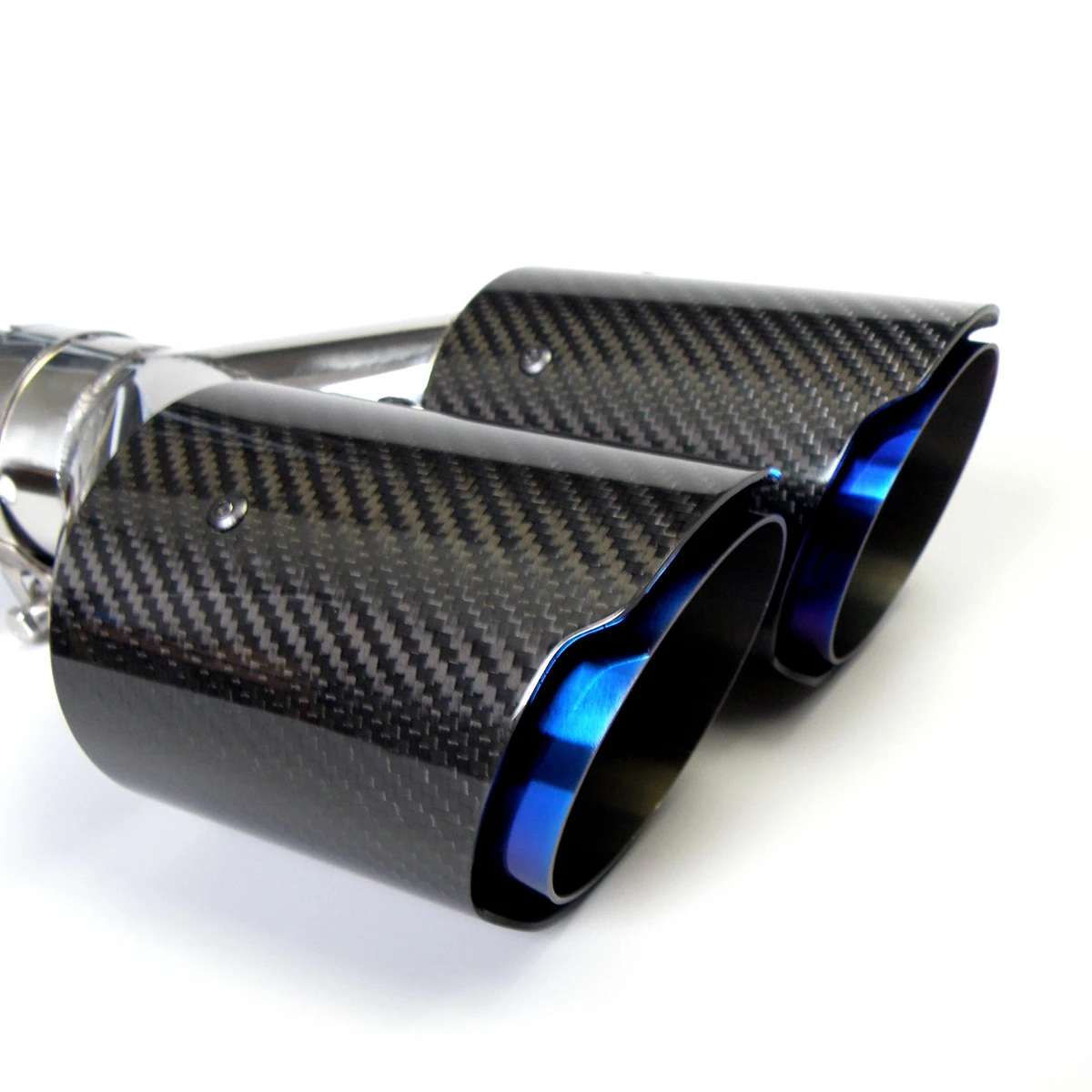 Dual Carbon Fiber + Stainless Steel Burnt Blue Universal Auto Exhaust Tip Double End Pipe for BMW BENZ VW Golf No Logo