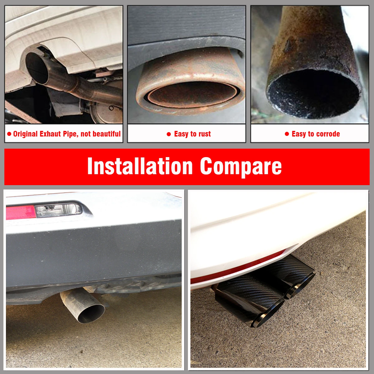 Детали деталей и установки: 1. Автомобильные универсальные двухконцевые трубы. 2. Универсальная установка для всех выхлопных труб данного калибра. 3. Прочный материал устойчив к УФ, воде, грязи, смазке, соли, легкой кислоте и маслу. 4. Все наши продукты покрыты гелем и тщательно проверены перед отправкой. 5. Мы предоставляем четкие изображения, метод измерения. Пожалуйста, проверьте как можно больше, чтобы убедиться, что товар тот, который вам нужен.