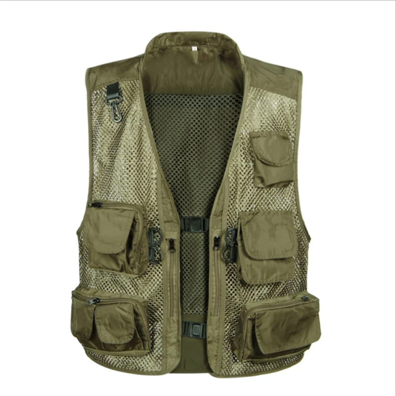Летний Быстросохнущий жилет из дышащей сетки для мужчин, жилет для фотографа без рукавов, куртка с несколькими карманами для улицы, походов, рыбалки, охоты, жилет