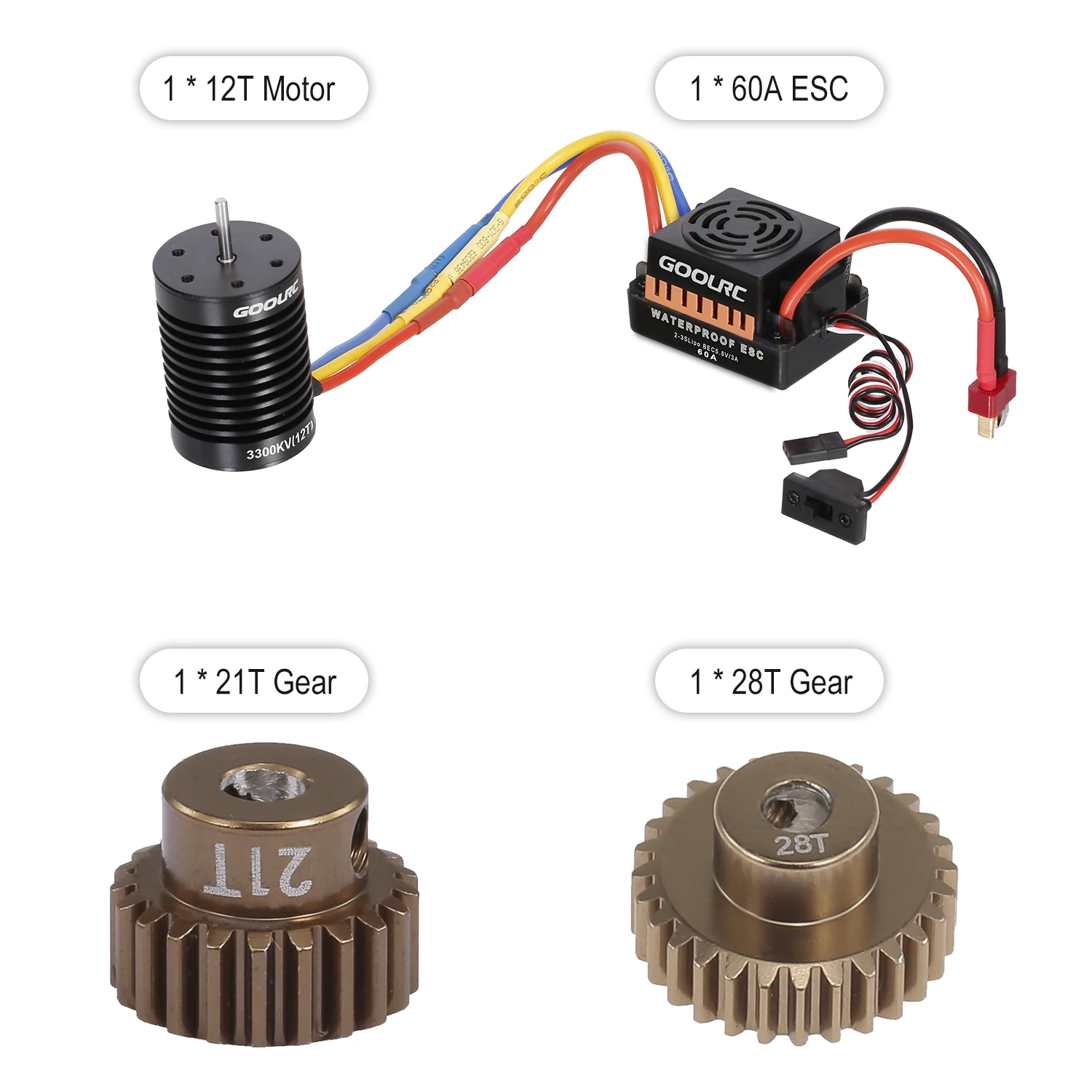 • 60A ESC: ESC с высокой пропускной способностью 60A непрерывный ток и 300A ток разрыва делает его подходящим для различных условий и обеспечивает стабильное вождение.