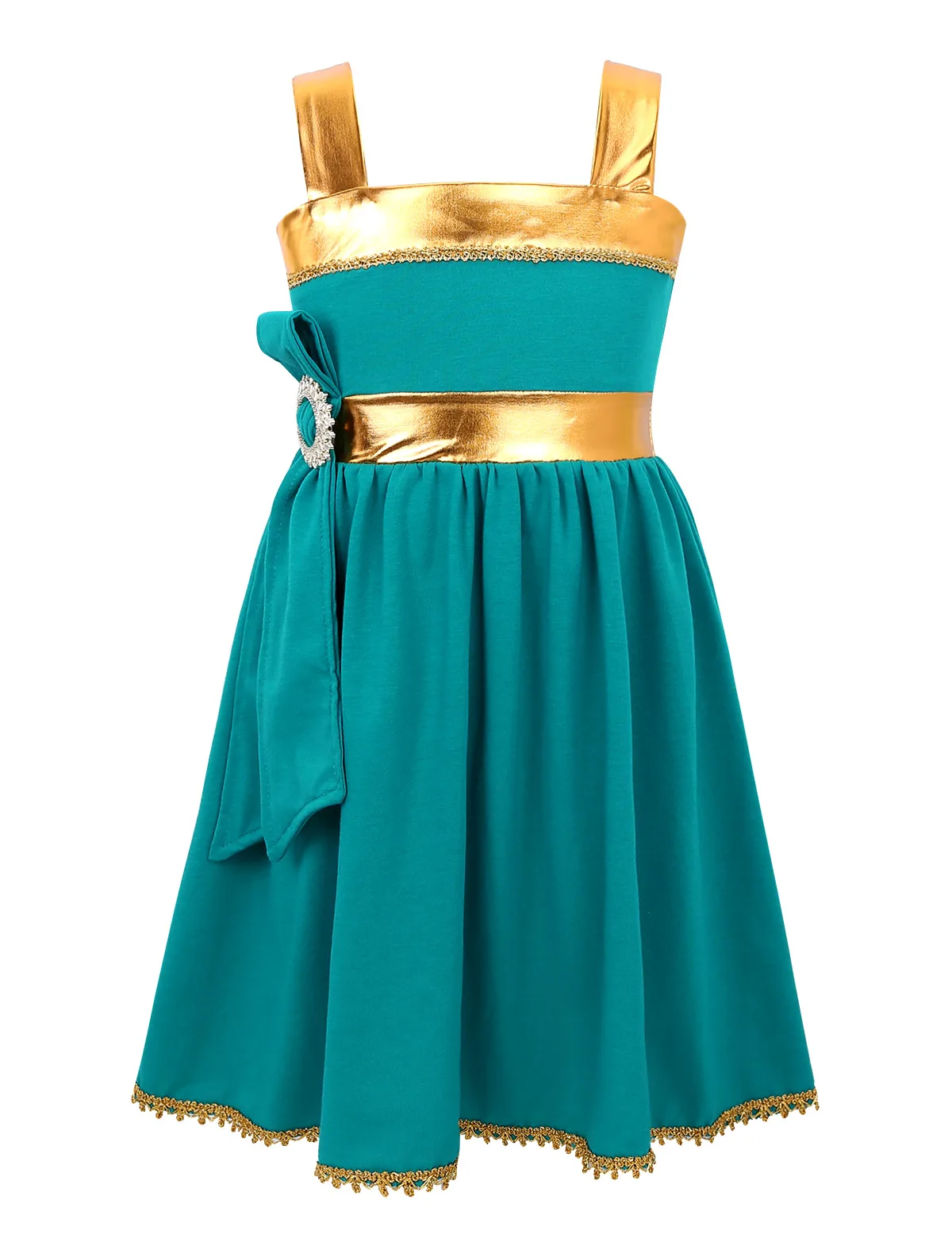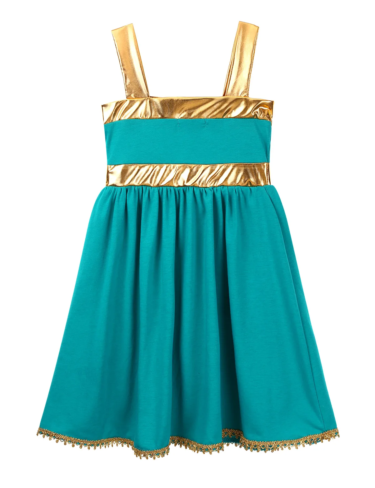 Однослойное платье с золотой оплеткой. Приятная для кожи ткань, мягкая и удобная в носке.