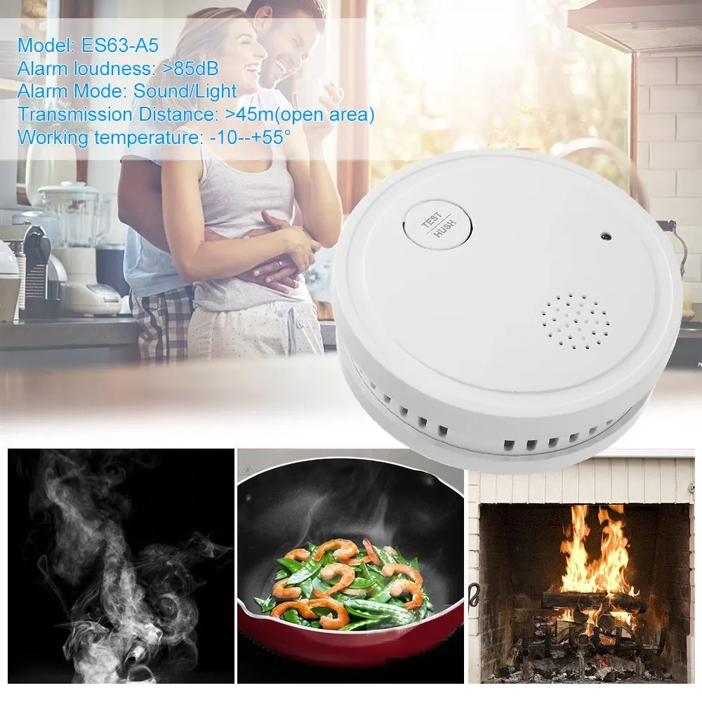 Обзор: Этот продукт представляет собой интеллектуальную дымовую сигнализацию с сигнальным индикатором. Как только дым достигнет определенного уровня опасности, срабатывает сигнализация, и сигнал тревоги будет отправлен в режиме реального времени, самосигнализация. Особенности: Беспроводное подключение, простота установки, нет необходимости рассматривать проблемы с линией, безопасно и удобно. Светодиодный индикатор будильника загорается красным цветом и стробами, он может сигнализировать о себе для достижения функции предупреждения. После того, как воздух будет свежим и чистым, он остановит сигнал тревоги и вернется к низкому режиму нормального мониторинга. Функция отключения звука: во время процесса сигнализации нажмите кнопку тестирования, чтобы отключить устройство, оставив только мигающий светодиодный светильник. Когда батарея низкая, сигнал тревоги будет звучать, чтобы напомнить вам, чтобы заменить батарею вовремя. Примечание: Пожалуйста, внимательно прочитайте руководство перед использованием Характеристики: Модель: ES63-A5 Рабочее напряжение: 3 в (AA 1,5 V 2 шт., в комплект не входят) Батарея жизни: 1,5 лет Громкость сигнализации: >85 дБ Обнаружение низкого напряжения: <2,6 в Беспроводной стандарт: IEEE802.11b/g/n Расстояние связи: >45 м (Открытая Зона) Рабочая температура: -10-+ 55 ° Рабочая влажность: <95% относительной влажности (без конденсации) Цвет изделия: белый Посылка Размеры: 12,3*10,7*4,3 см/4,84*4,21 * 1.69in Посылка Вес: 127g/4,48 oz Посылка: 1 * детектор дыма 1 * Винтовые фитинги 1 * Руководство по эксплуатации (на английском языке)