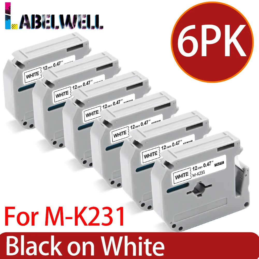 Labelwell 6 шт. MK231 12 мм лента для маркировки совместима с Brother M-K231 MK 231 MK-231 131 431 531 631 731 для P-touch принтера черная на белом узоре лента для PT-70 PT-80