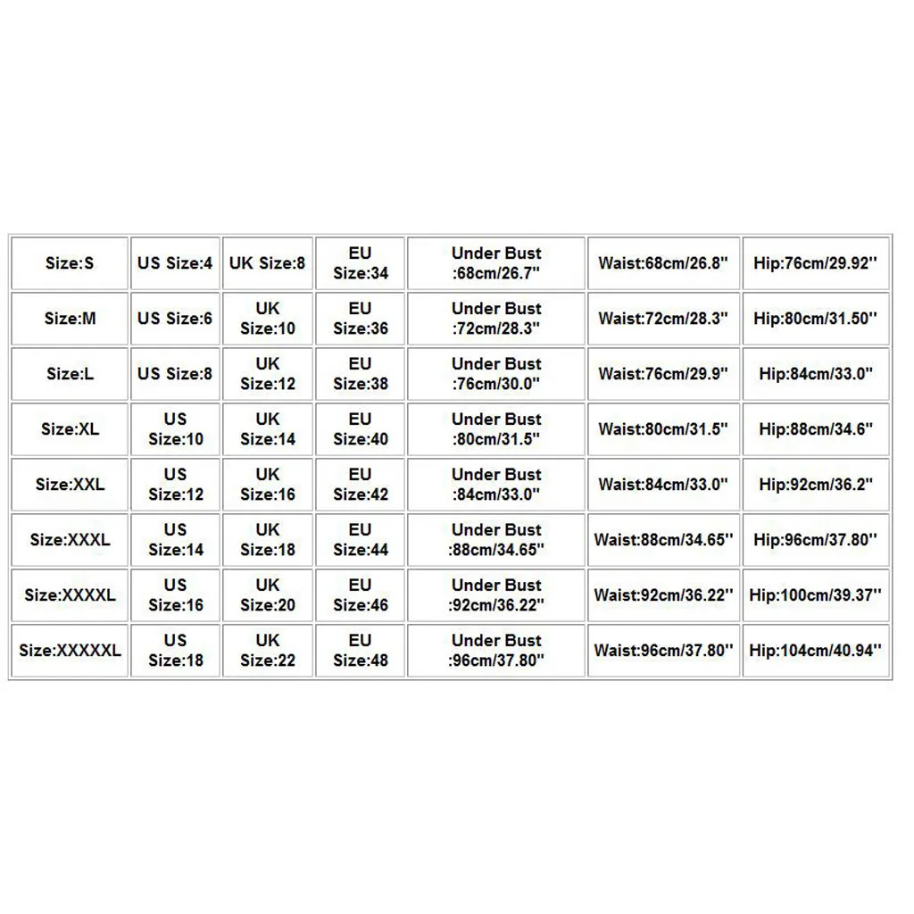 Размер Американский размер Размер Великобритании Европейский размер Под грудью Талия Бедра S 4 8 34 68 см/26,7" 68 см/26,8" 76 см/29,92'' М 6 10 36 72 см/28,3 дюйма 72 см/28,3 дюйма 80 см/31,50'' L 8 12 38 76 см/30,0" 76 см/29,9" 84 см/33,07'' XL 10 14 40 80 см/31,5" 80 см/31,5" 88 см/34,65'' XXL 12 16 42 84 см/33,0" 84 см/33,0" 92 см/36,22'' XХХL 14 18 44 88 см/34,65" 88 см/34,65" 96 см/37,80'' XXXXL 16 20 46 92 см/36,22" 92 см/36,22" 100 см/39,37'' XXXXXL 18 22 48 96 см/37,80" 96 см/37,80" 104 см/40,94''