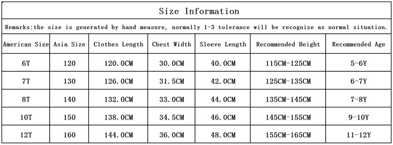 1. Пожалуйста, выбирайте в соответствии с фактическим размером ребенка. 2. Цвет может немного отличаться из-за различных настроек дисплея. 3. Размер, генерируемый нормальным диапазоном погрешности, составляет 1-3 см.