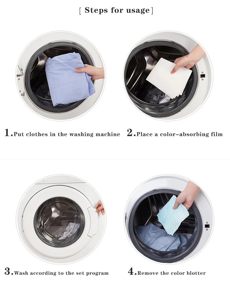 1. Используйте 3-4 листа в стиральной машине, чтобы остановить пробежки цвета, что позволяет мыть цветные вместе.