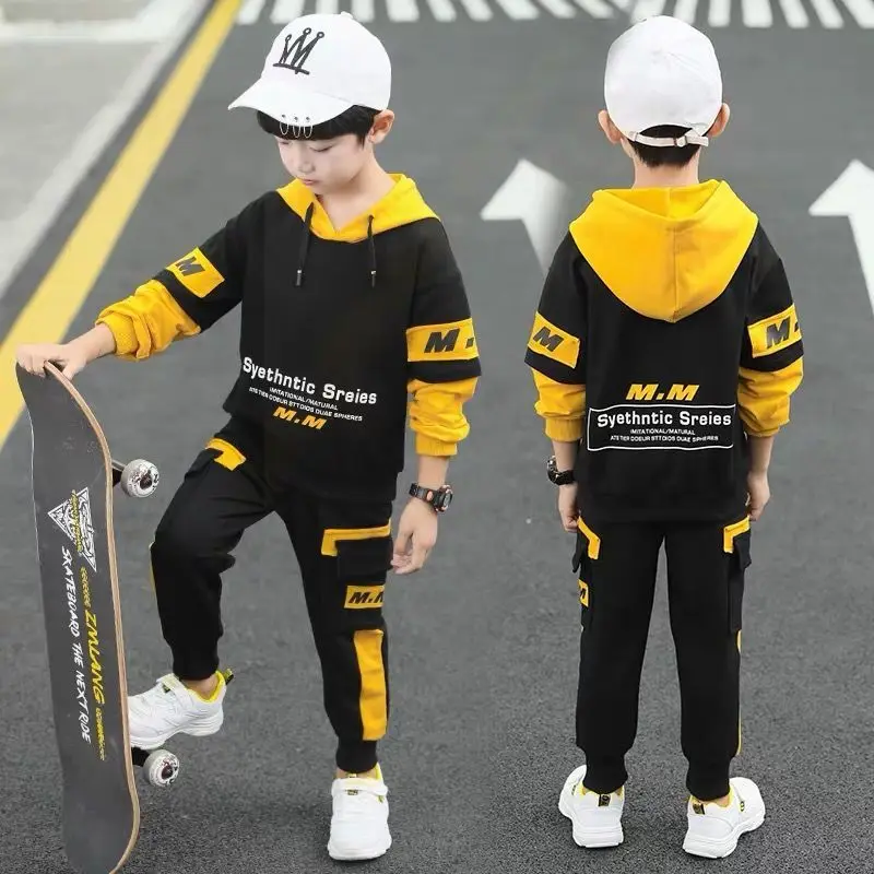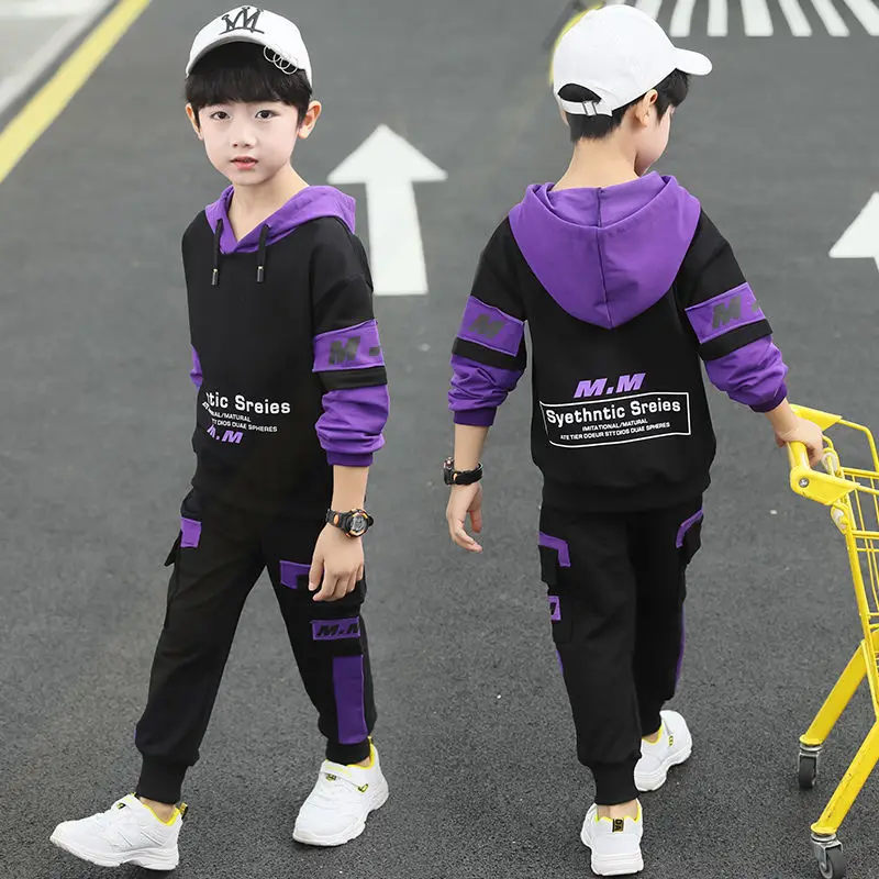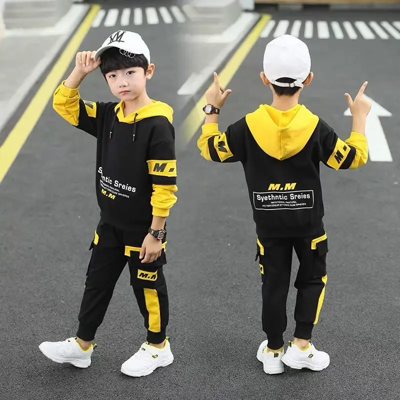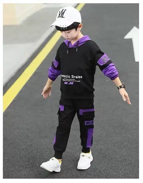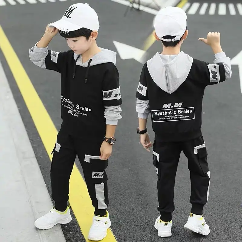 Контрастный детский осенний костюм с капюшоном для мальчиков Новинка 2020 года, спортивная одежда для школьников и подростков, комплект из двух предметов, весенняя одежда для девочек Han banchao