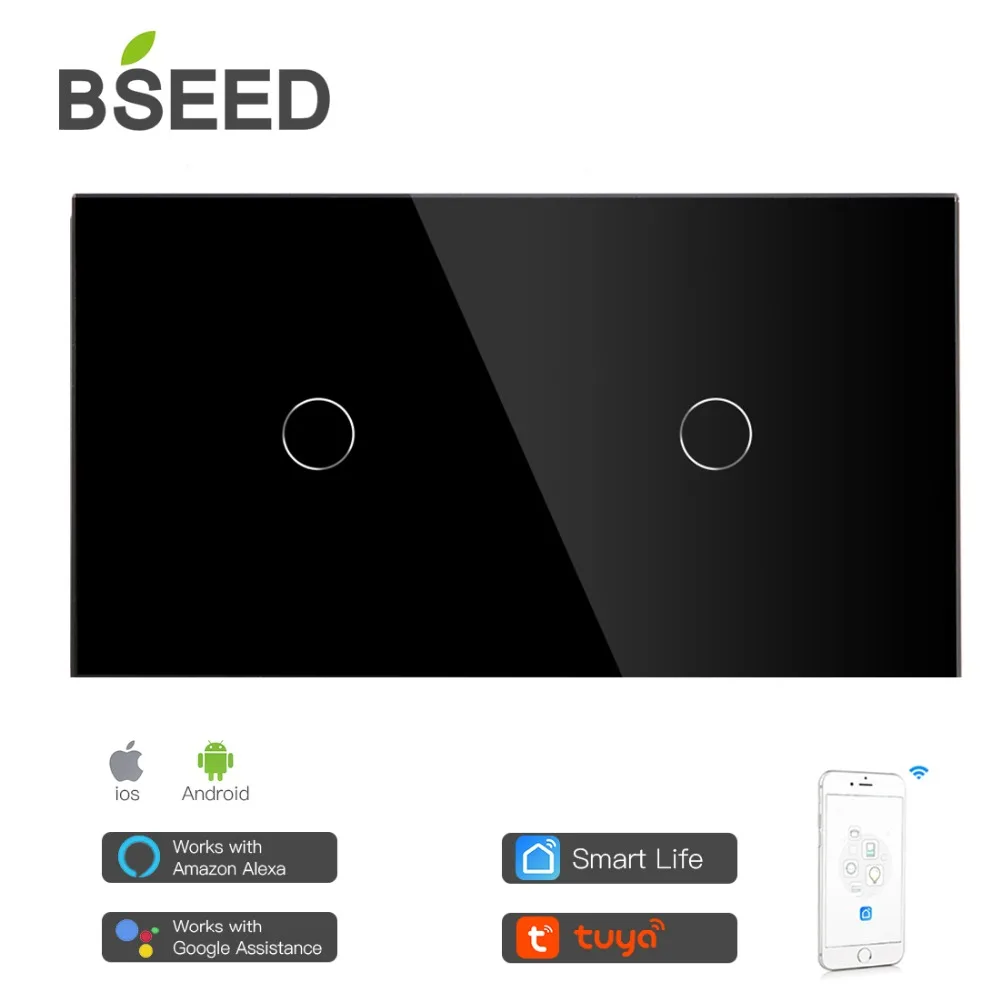 Bseed Smart 2 банды WifI управление сенсорный выключатель работа с Tuya157mm светильник переключатель Белый Черный Золотой Зеркало Кристалл Панель переключатель