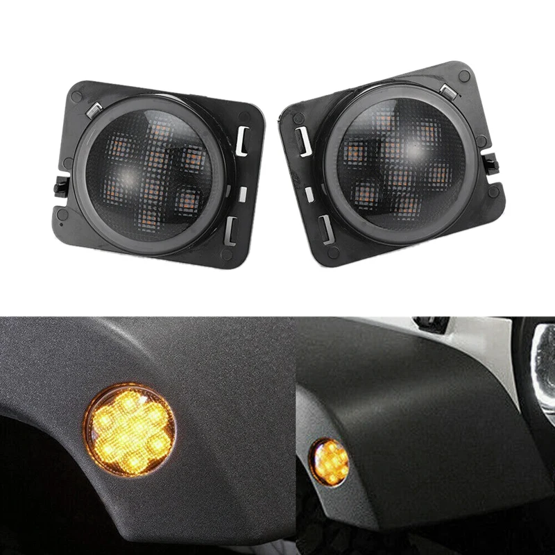 1 пара переднее крыло автомобиля светодиодный боковой маркер указатель поворота светильник дымовые линзы для Jeep Wrangler JK 2007-2018