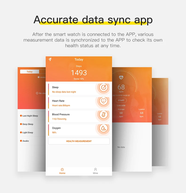 Монитор сердечного ритма Монитор артериального давления Монитор кислорода в крови Шагомер Калории Измерение температуры тела Напоминание о сидячем положении Информационный Push (WeChat, QQ, LINE, Facebook, Twitter, KaoKao Talk, WhatsApp, Skype) Напоминание о входящем звонке Поверните экран запястья Монитор сна Несколько спортивных режимов Встряхните, чтобы сделать фотографии Поиск телефона