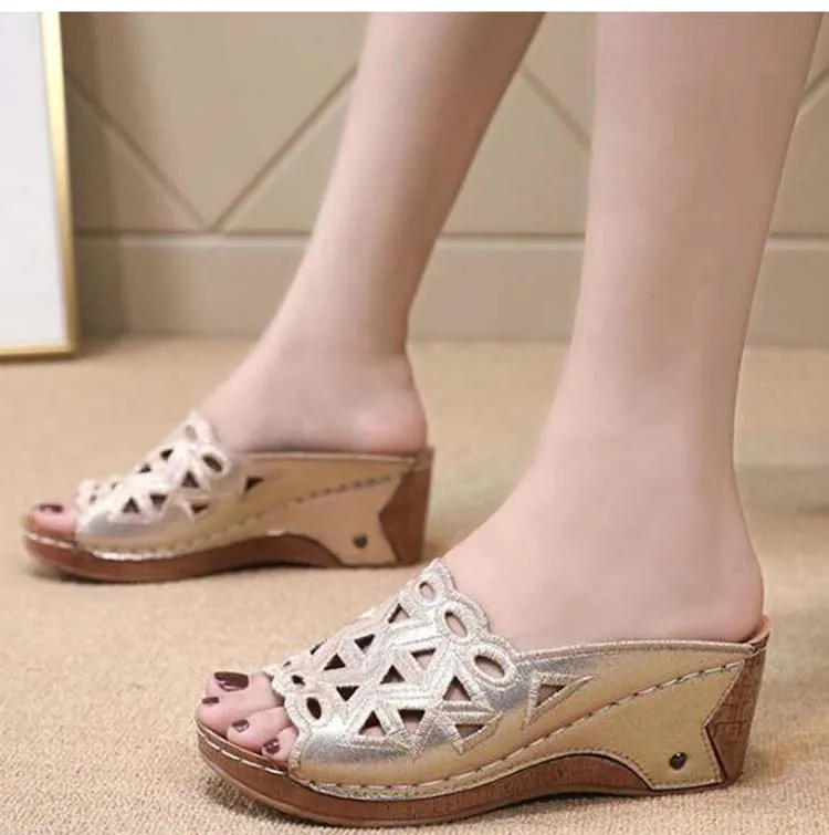 Женские босоножки; Модные туфли на танкетке с открытым носком на низком каблуке в стиле ретро; Женские пляжные сандалии; sandalias de mujer; 2020