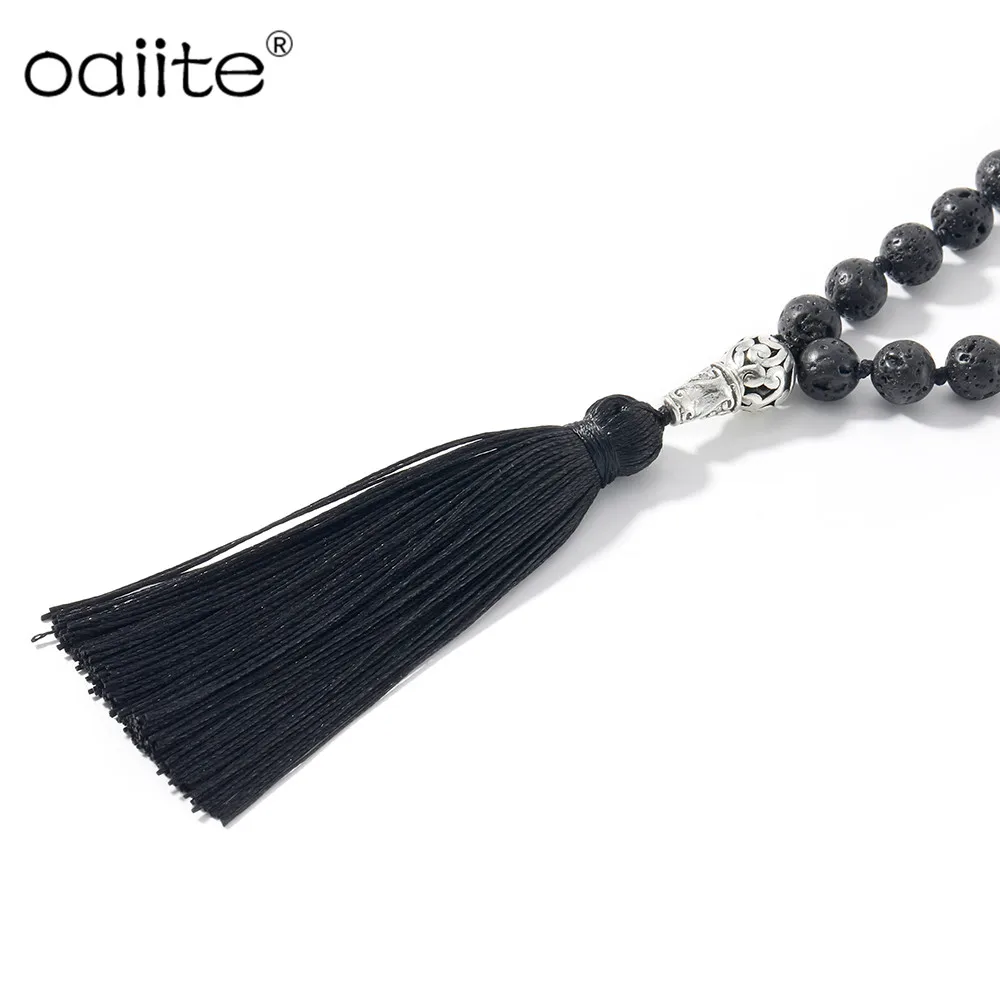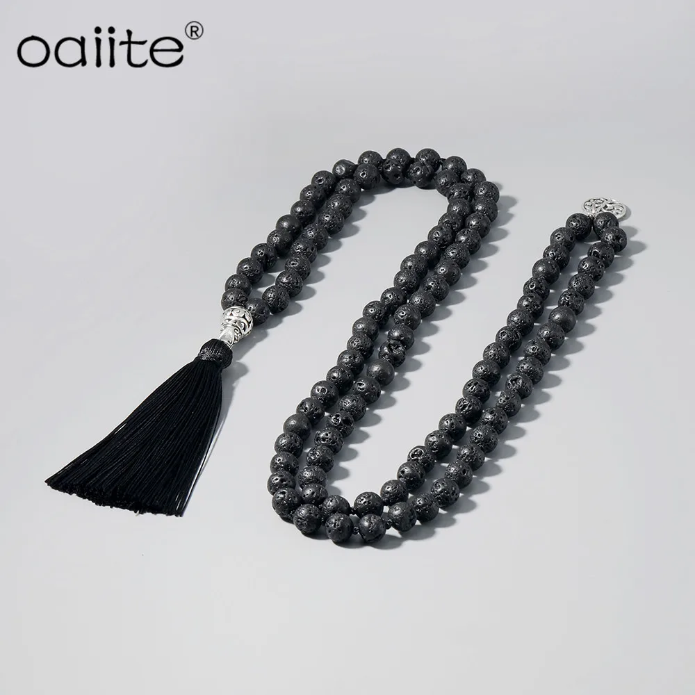 Mala бусы ожерелье медитация натуральное ожерелье Лава ожерелье 108 ручная завязанная японская ожерелье-бусы с кисточкой ожерелье с деревом Древа Жизни Кулон