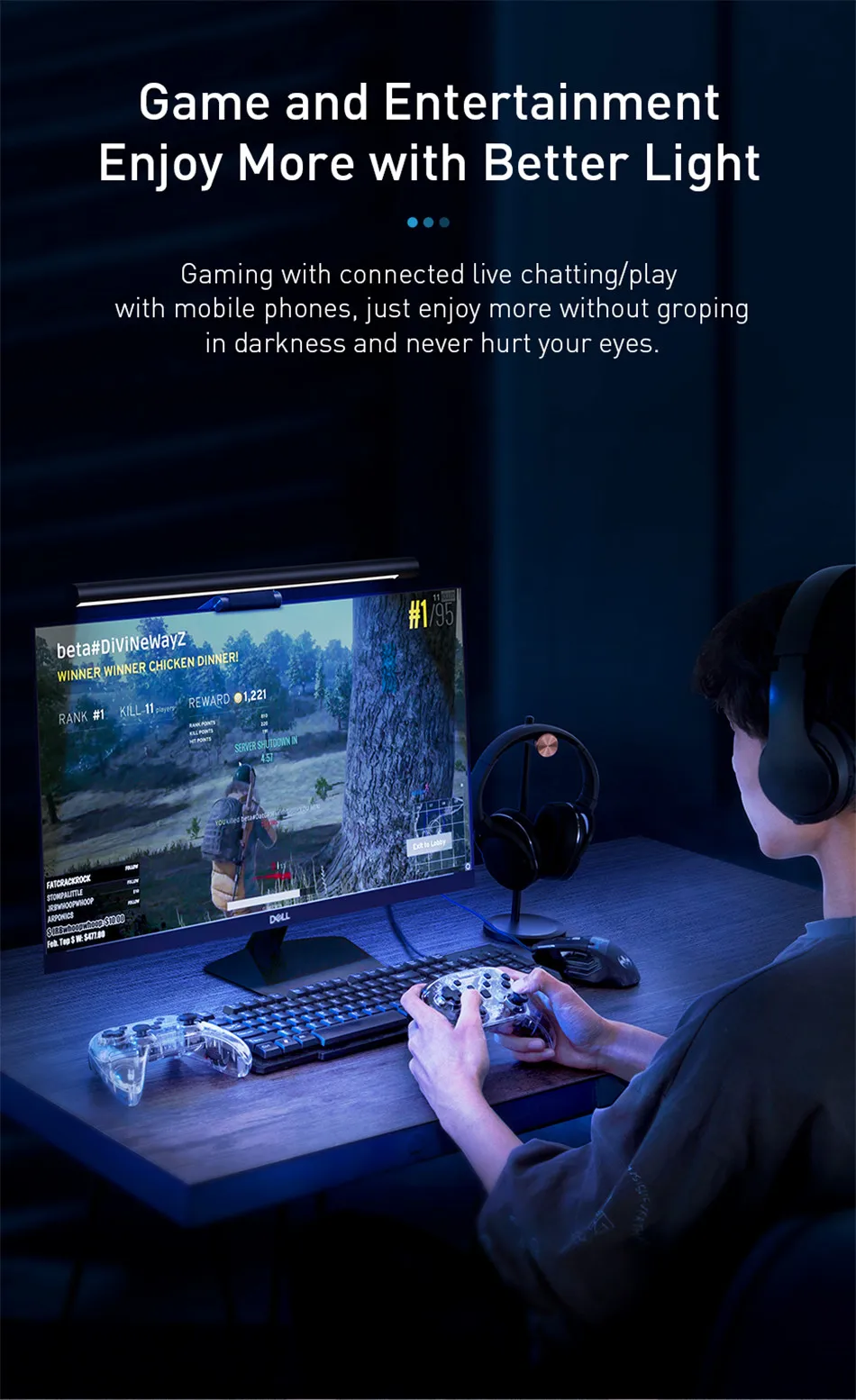 3. Защита глаз: светильник монитора компьютера с функцией защиты от мерцания и синий светильник может обеспечить лучшую видимость в темноте, чтобы защитить ваши глаза.