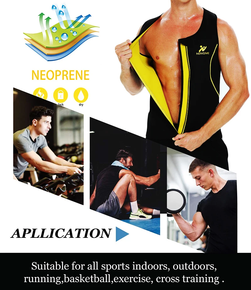 NINGMI сжимающая жир рубашка для мужчин, тренажер для талии, стройнящий формирователь тела, жилет для похудения, Neoprenen, сауна, пояс, корректирующая одежда, спортивный топ, Майки