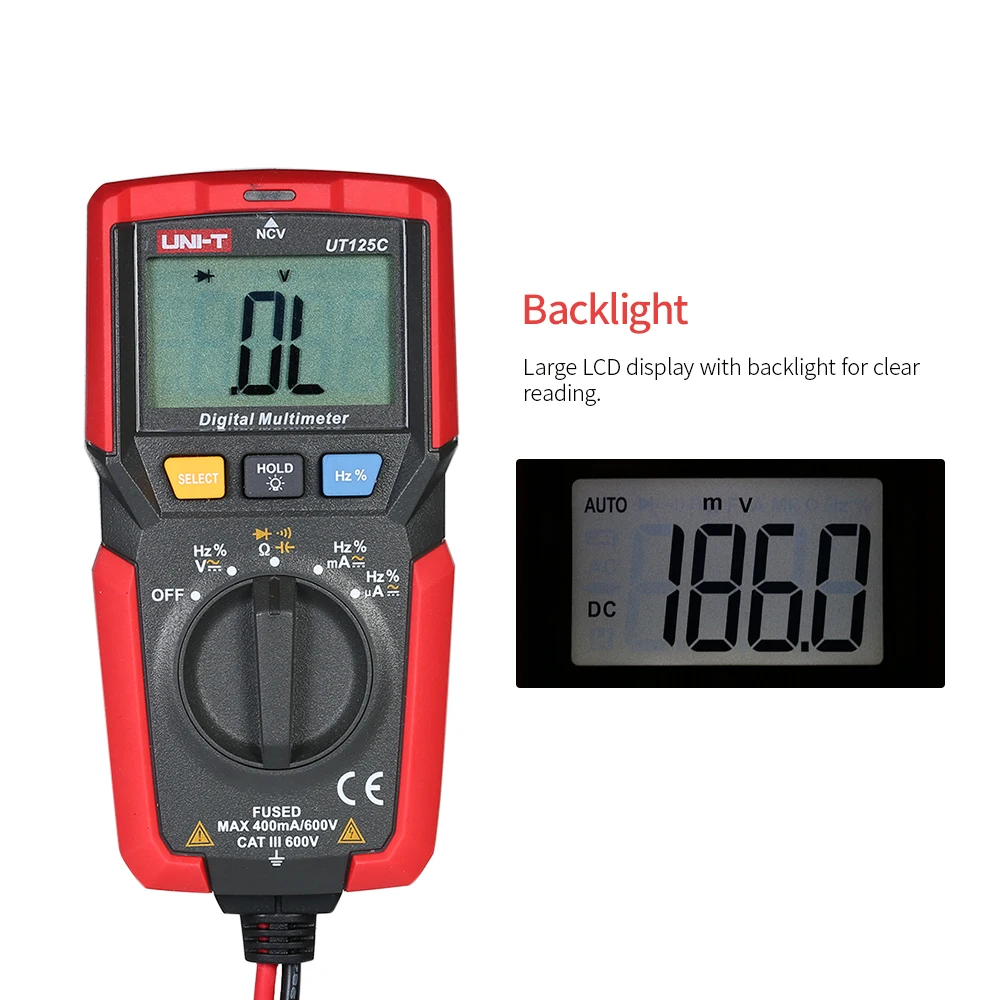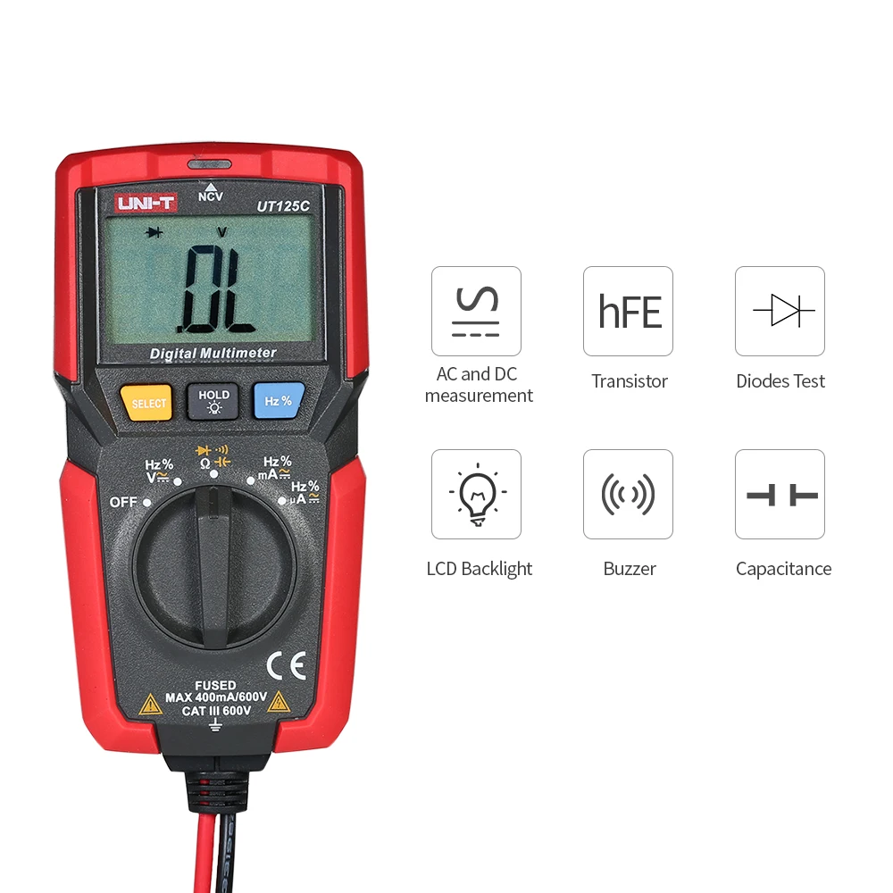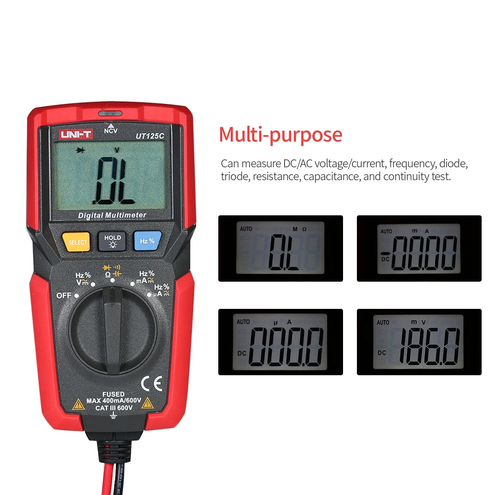 Этот мультиметр предназначен для безопасного и точного устранения различных автомобильных и бытовых электрических проблем. Предоставляется ЖК-дисплей для четкого чтения. Может использоваться для измерения постоянного/переменного напряжения/тока, сопротивления, емкости, частоты, диодов, Триод и тест на непрерывность и т. д.