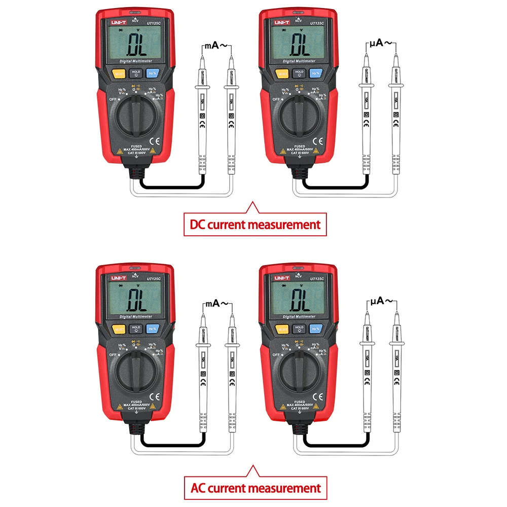 Ток переменного тока: 0.1μA ~ 400mA
