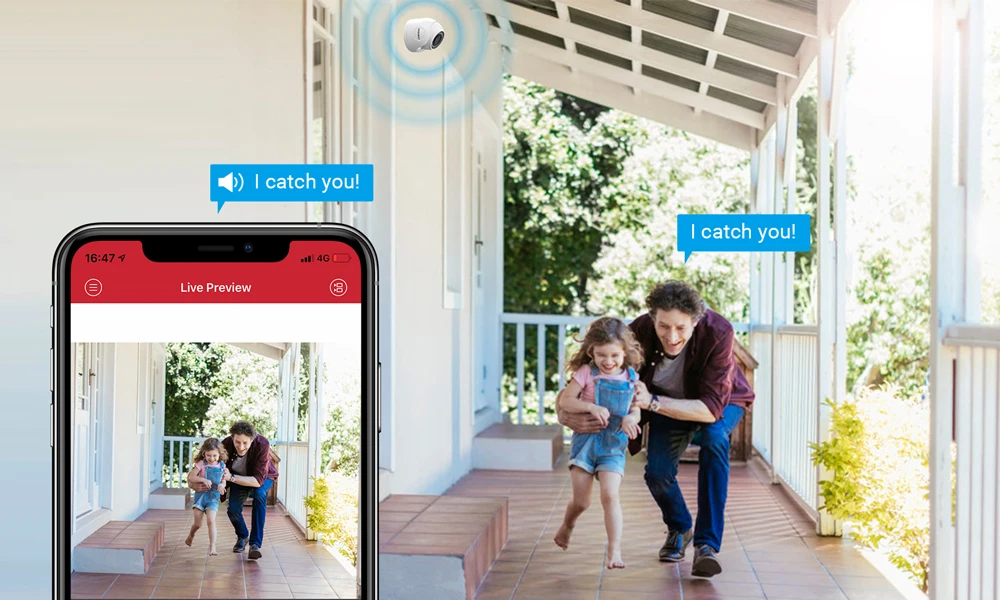 Независимо от того, где вы находитесь, вы можете в любом месте в любое время удаленно получить доступ к камере безопасности, чтобы увидеть Потоковую передачу в реальном времени и оставаться на связи.