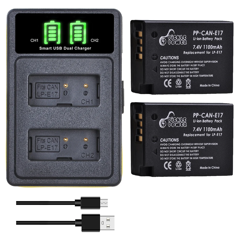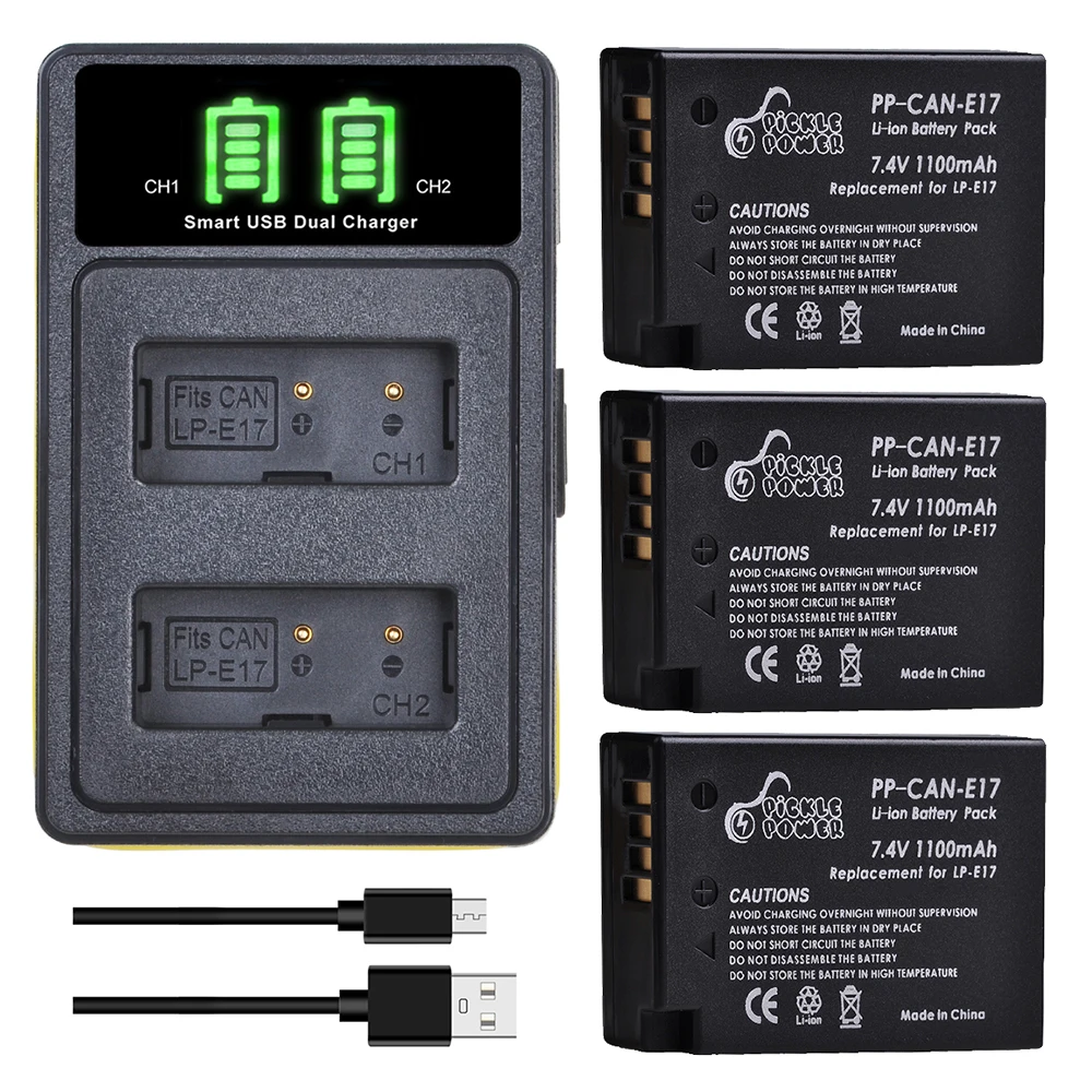 Аккумулятор Pickle Power 1100mAh LP-E17 + со встроенным кабельным зарядным комплектом для Canon EOS 200D M3 M5 M6 750D 760D T6i T6s 800D 8000D Kiss X8i
