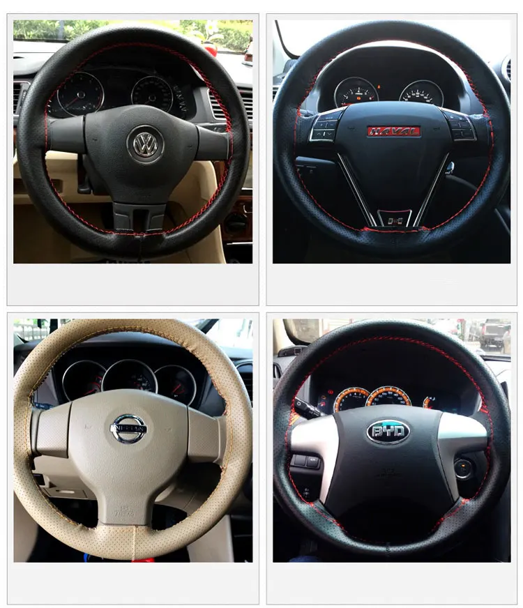 Тип изделия: чехол для руля Подходит для: наиболее распространенного рулевого колеса Цвет: черный/красный/коричневый/серый/бежевый Dapter Руль диаметр 38 см Материал: искусственная кожа