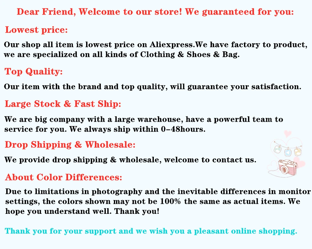 1. Размер На бирке-это Азиатский размер, который на 1-2 размера меньше, чем размер США.<Стиль = "Размер коробки: граница-коробка;">2. Есть некоторая разница в цвете из-за светильник, надеемся на ваше понимание.<Стиль = "Размер коробки: граница-коробка;">3. Возможна погрешность в 1-3 см. (Если вы не уверены в размере, пожалуйста, свяжитесь с нами перед оплатой.)"