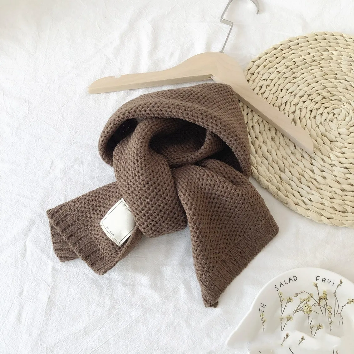 Детский вязаный шарф, чистый цвет, большая белая этикетка, детский шарф, Осень-зима, простой модный детский теплый шерстяной платок