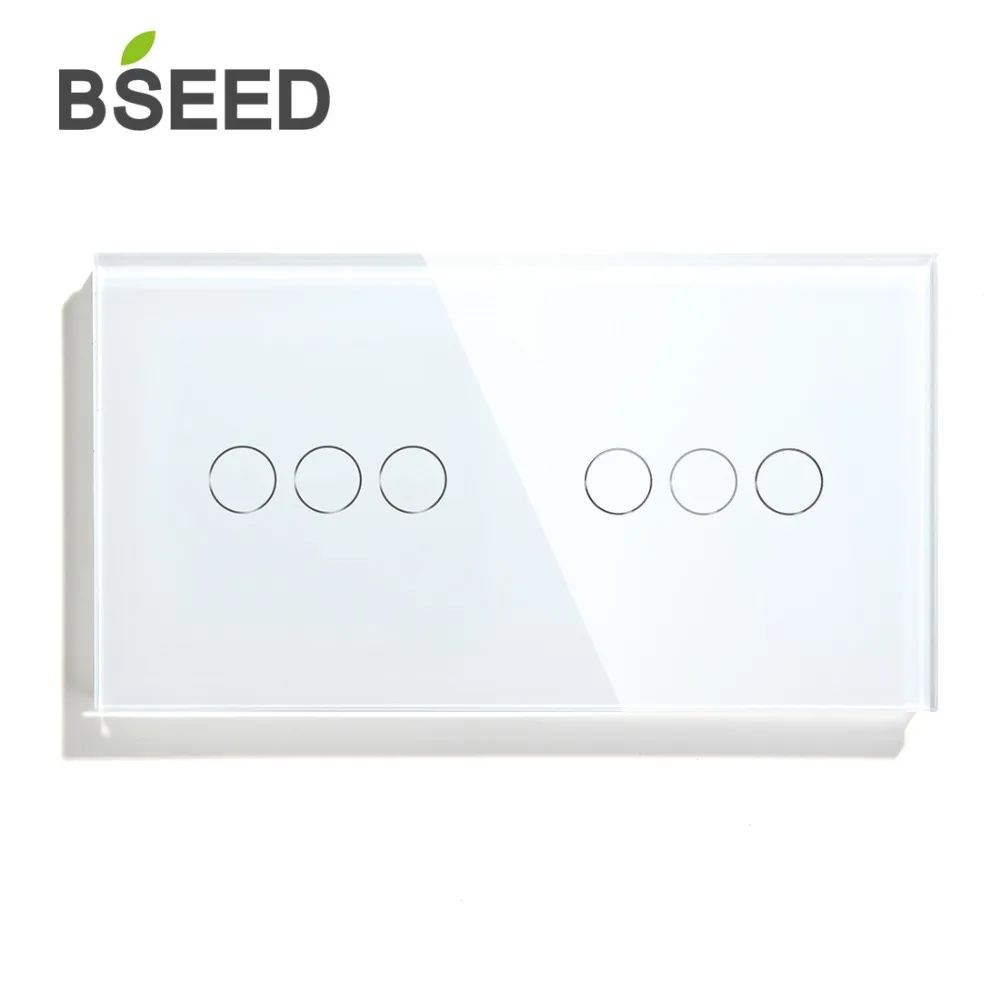 Bseed 6 Gang 1 Way 2 Way роскошный настенный сенсорный сенсор переключатель 157 мм светильник белый черный золотой кристалл Класс панель Переключатель