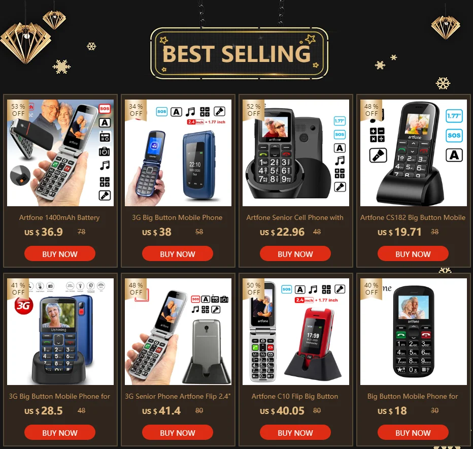❤?Artfone старшеклассник без контракта | Сотовый телефон с двумя sim-картами и аварийной кнопкой | Большие кнопки для пенсионера, аккумулятор 1400 мА · ч (C1 Plus)