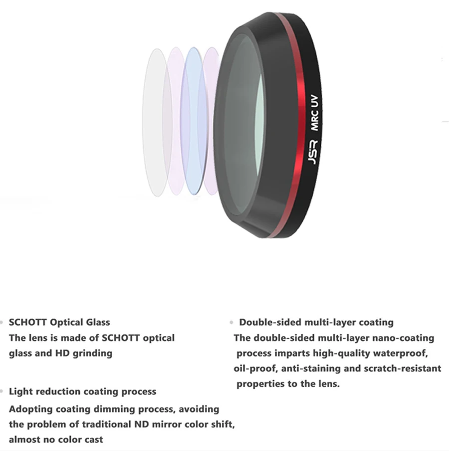 Double-sided multi-layer coating,the double-sided multi-layer nano-coating process imparts high-quality waterproof,oil-proof,anti-staining and scratch-resistant properties to the lens .