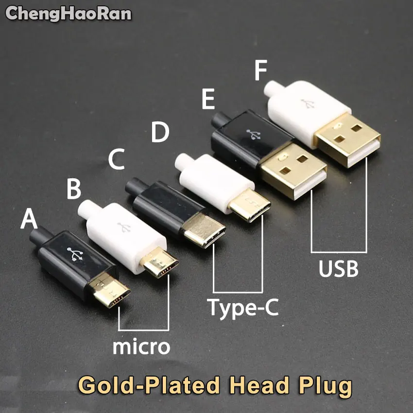 ChengHaoRan Micro USB 5Pin сварочный Тип C 4P штекерные соединители Зарядное устройство USB Хвостовая зарядная розетка 3/4 в 1 Белый Черный штекер