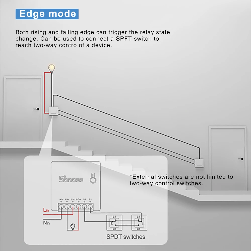 Удобно автоматизировать бытовую технику в приложении eWeLink с помощью смартфона или голосовой команды. Поддержка 3 режимов запуска импульсного режима (работает с кнопочными переключателями), edge mode (работает с переключатели SPDT) И следующий режим (работает с переключателями с отметкой «ON» и «OFF» и датчиками с выходом сухого контакта). Он поддерживает режим «сделай сам» (предназначен для разработчиков), который позволяет пользователям интегрировать MINIR2 в третьи по всему миру вечерние системы управления с открытым исходным кодом для достижения контроля локальной сети без облачного сервиса, такие как домашний помощник, openHAB, ioBroker. И так далее