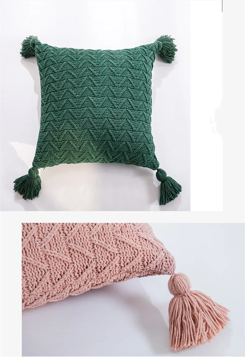 Вязаные шенилле Вязаные чехлы для подушек Розовый Бежевый Желтый наволочка с кисточками на диван-кровать для дома гостиная 45x45 см наволочка
