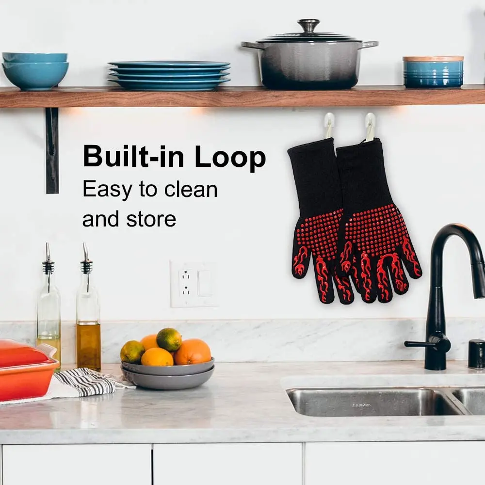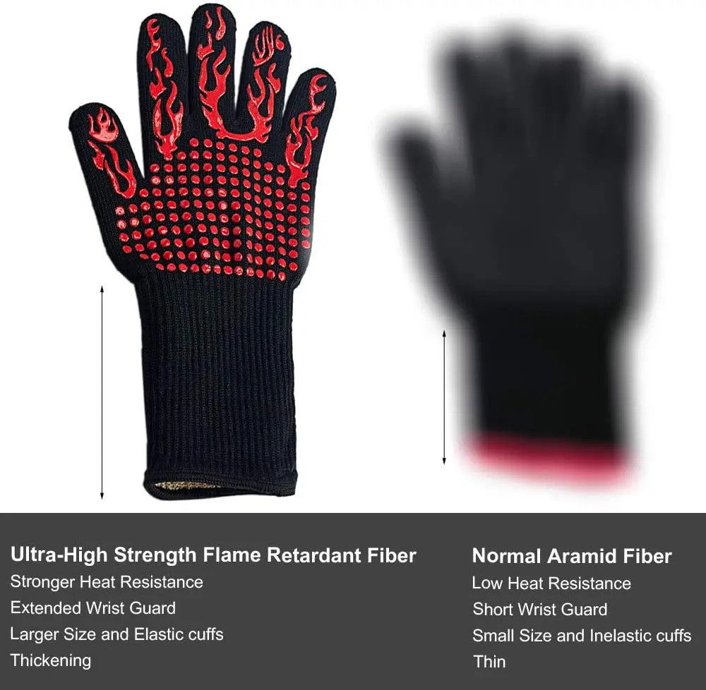 Огнеупорные и стойкие к воздействию экстремального тепла-наши перчатки для гриля для кухни могут стабильно обеспечить ультра защиту от тепла до 1472 °F (800 ℃), которые награждены также самым высоким, EN388 уровень 5 сопротивление резанию-в 4 раза прочнее, чем кожа. Идея для гриля, резки, приготовления пищи, выпечки, деревообработки, сварки.