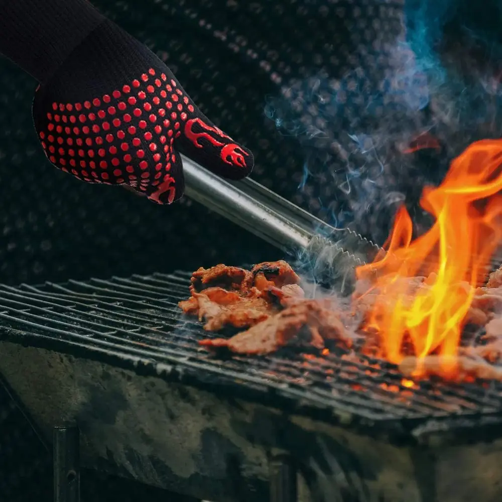 Противоскользящие и гибкие-наши термостойкие перчатки для барбекю покрыты пищевым силиконом, чтобы убедиться, что ваш предмет не соскальзывает с ваших рук. Отдельные пальцы позволяют двигаться более комфортно и гибко. Они позволяют вам безопасно и стабильно держать различные виды горячих и гладких кухонных изделий.