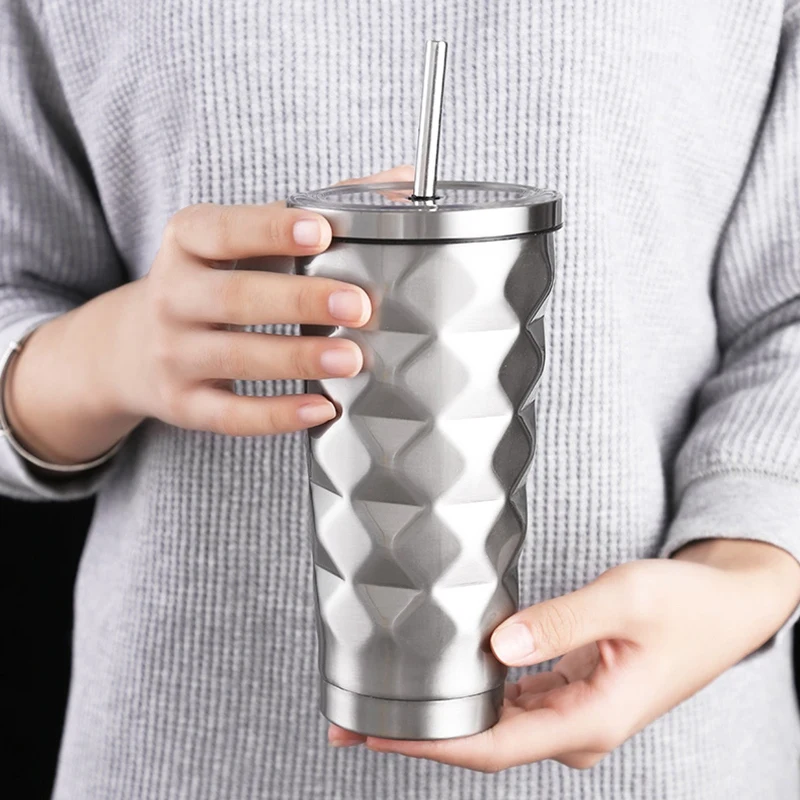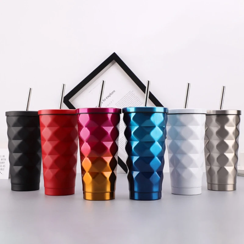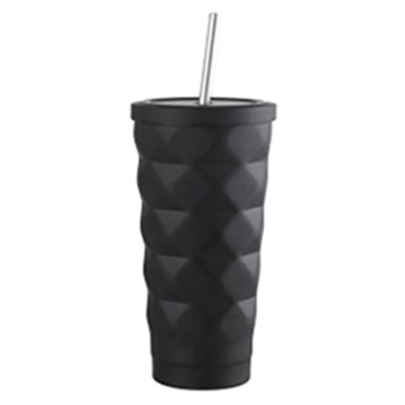 Изолированная чашка из нержавеющей стали, термосы 600 мл, изолированная Автомобильная кофейная кружка для путешествий, бутылка для напитков с соломинкой черного цвета